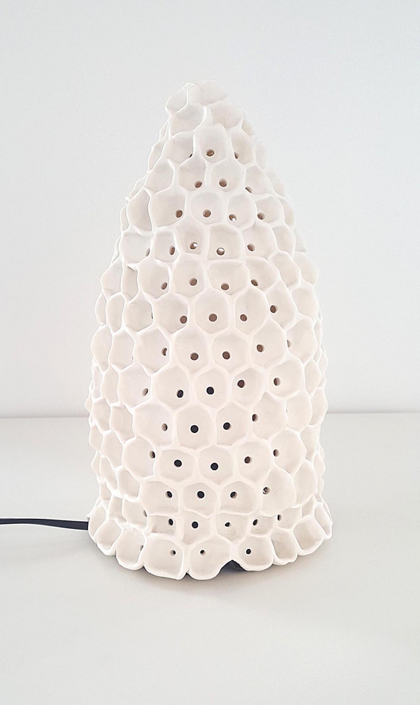 lampa stołowa, biała nieszkliwiona porcelana z ręcznie