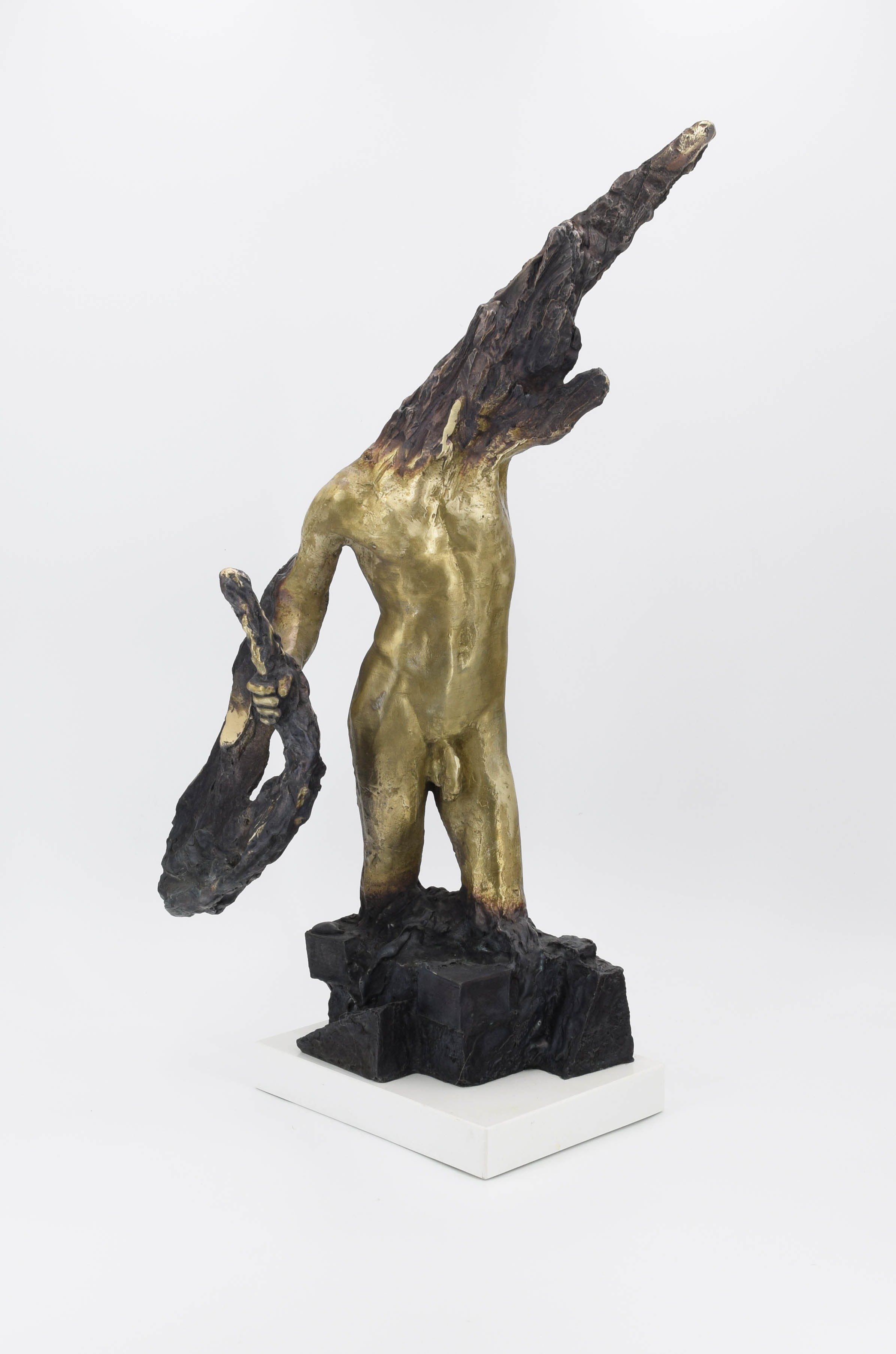 brąz, podstawa z kamienia; wys. całkowita: 58 cm;sygn., dat., nakład i opis autorski na spodzie: Piotr Bubak / "Ikar" / 2/8 2024.