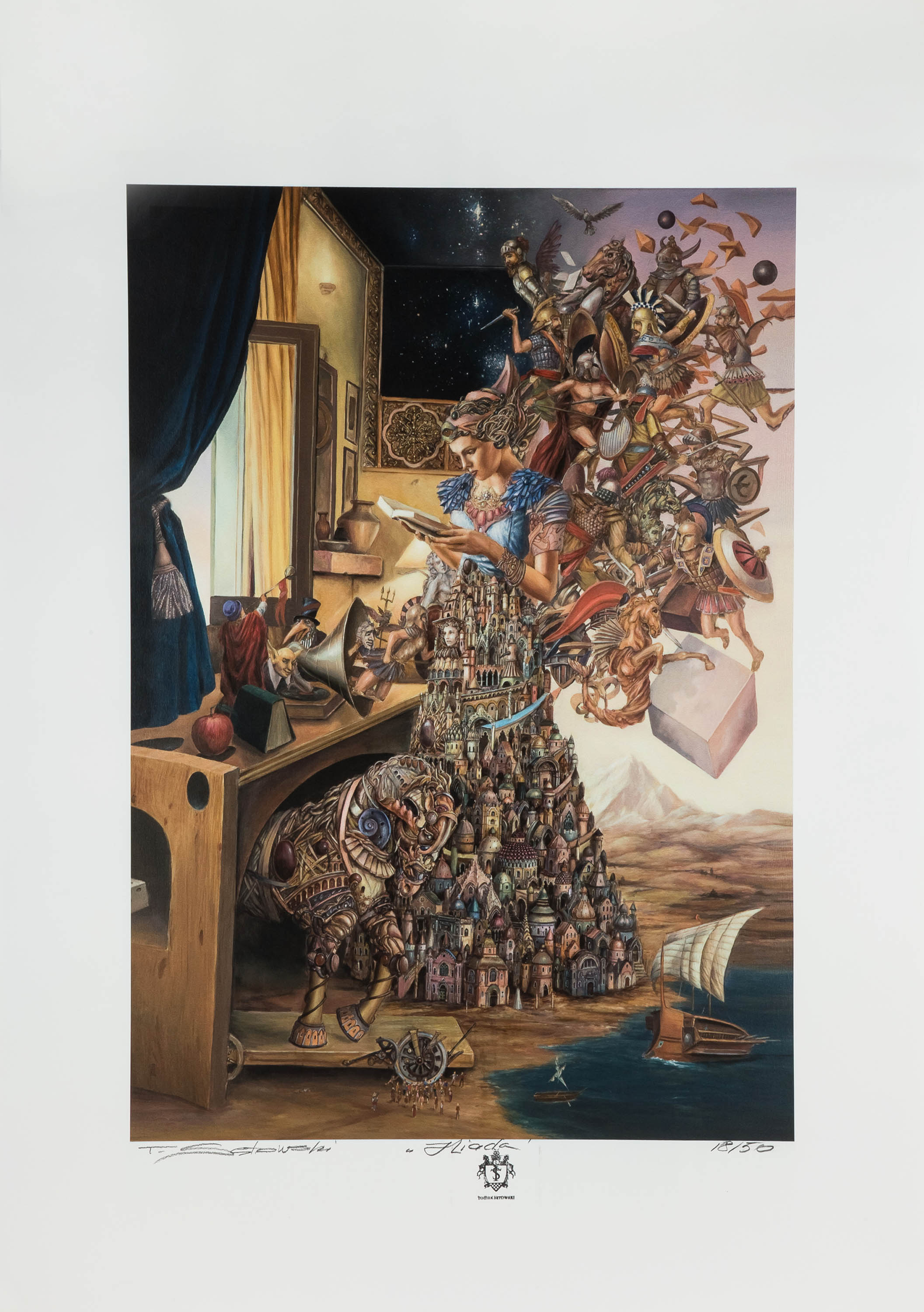 inkografia, papier, 100 x 70 cm (arkusz),sygn. l.d.: ołówkiem: T. Sętowski, opisany p.d.: 18/50, śr.d.: Iliada