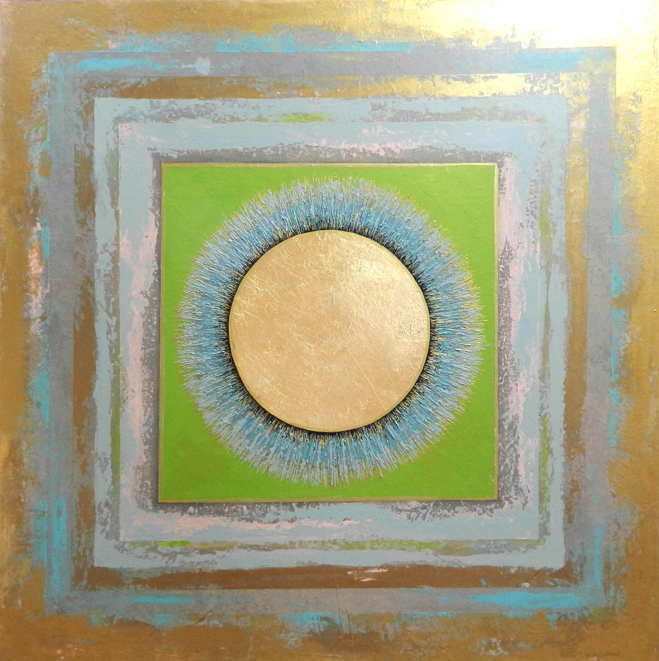 technika mieszana (akryl, farby metaliczne, szlagmetal), płótno, 80 x 80 cm,