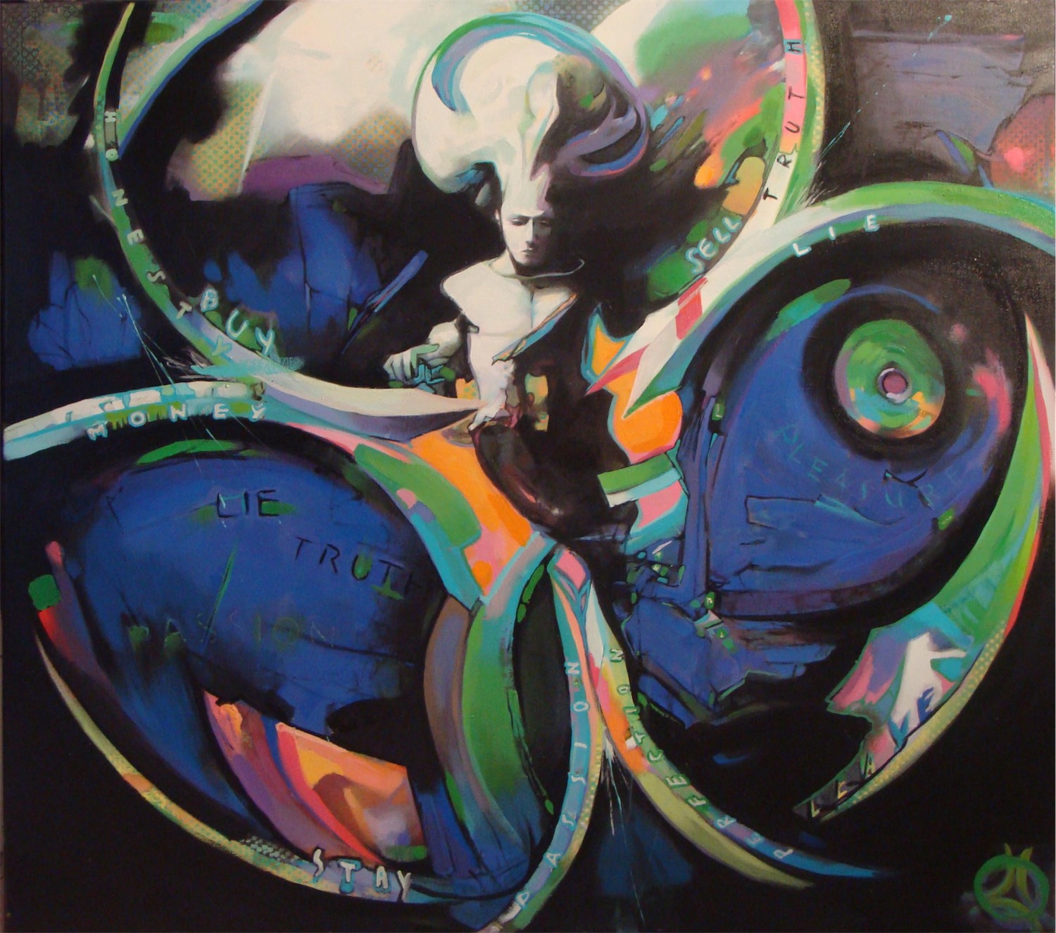 grafika cyfrowa (wydruk), olej, płótno, 100 x 110 cm