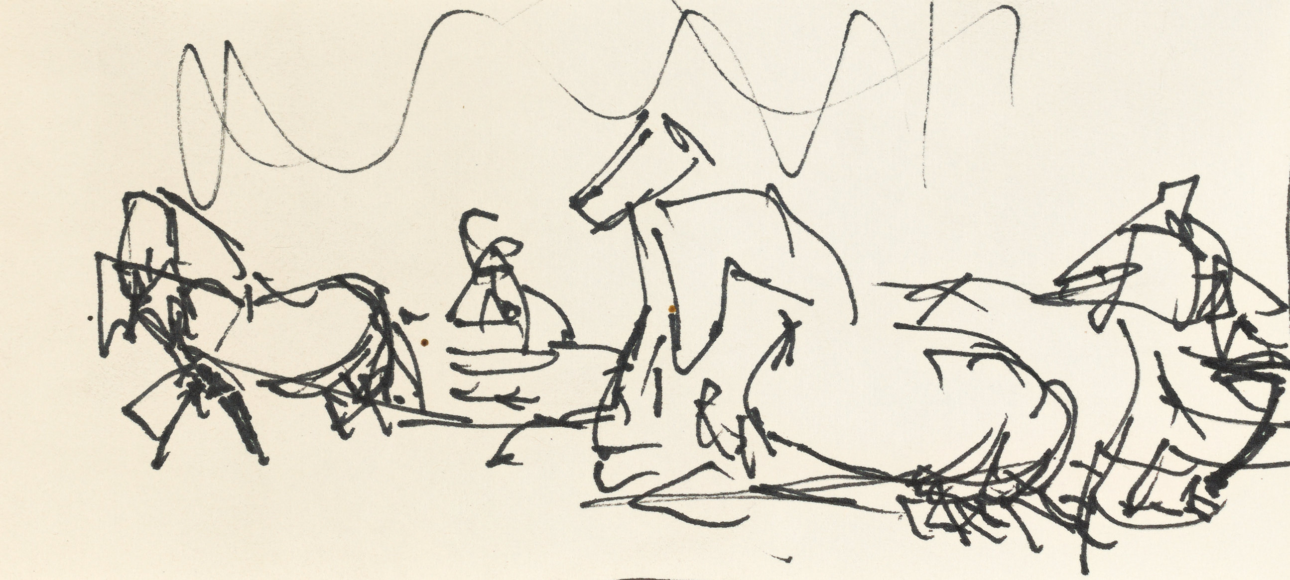 piórko, tusz, papier; 6,4 x 13,6 cm.