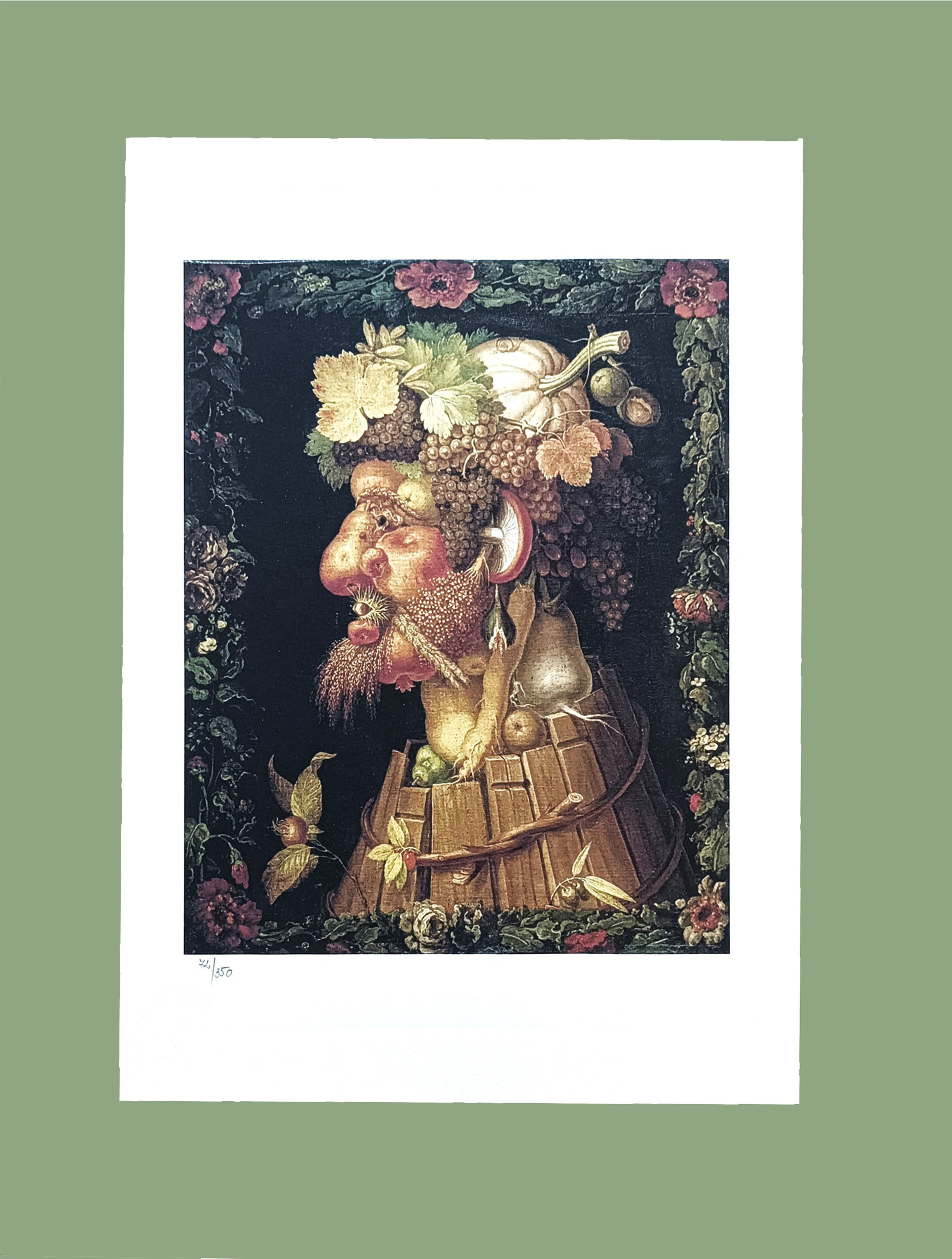 Arcimboldo stworzył serię portretów, w których postacie były skomponowane z różnych elementów natury. Na przykład, jego dzieło *"Lato"* (Summer) przedstawia mężczyznę, którego głowa zbudowana jest z owoców, takich jak winogrona, arbuzy i inne letnie plony. Podobnie, w "Zimie"* (Winter) przedstawia postać utworzoną z takich elementów jak orzechy i suszone owoce czy prezentowana „Jesień” pełna dojrzałych owoców, grzybów, plonów lasów.