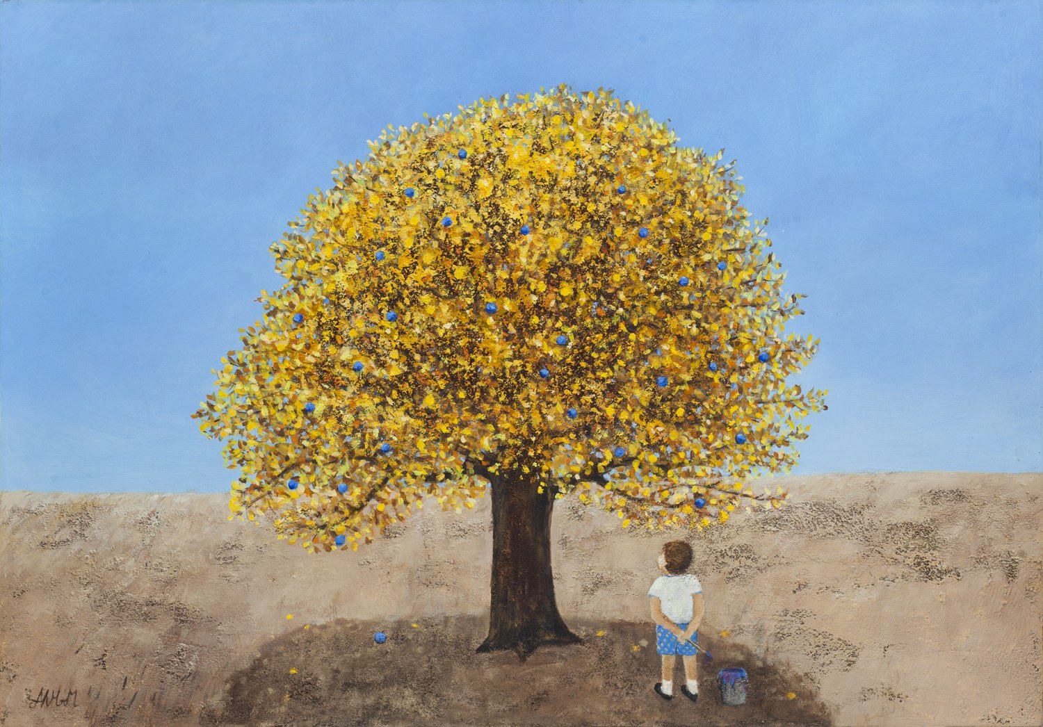 Sygn. l.d.: monogramem, opisany na odwrocie: "Jesień" z cyklu "Śniło mi się..." 2015 r. olej + akryl Angelika Milaniuk-Mitruk AMM