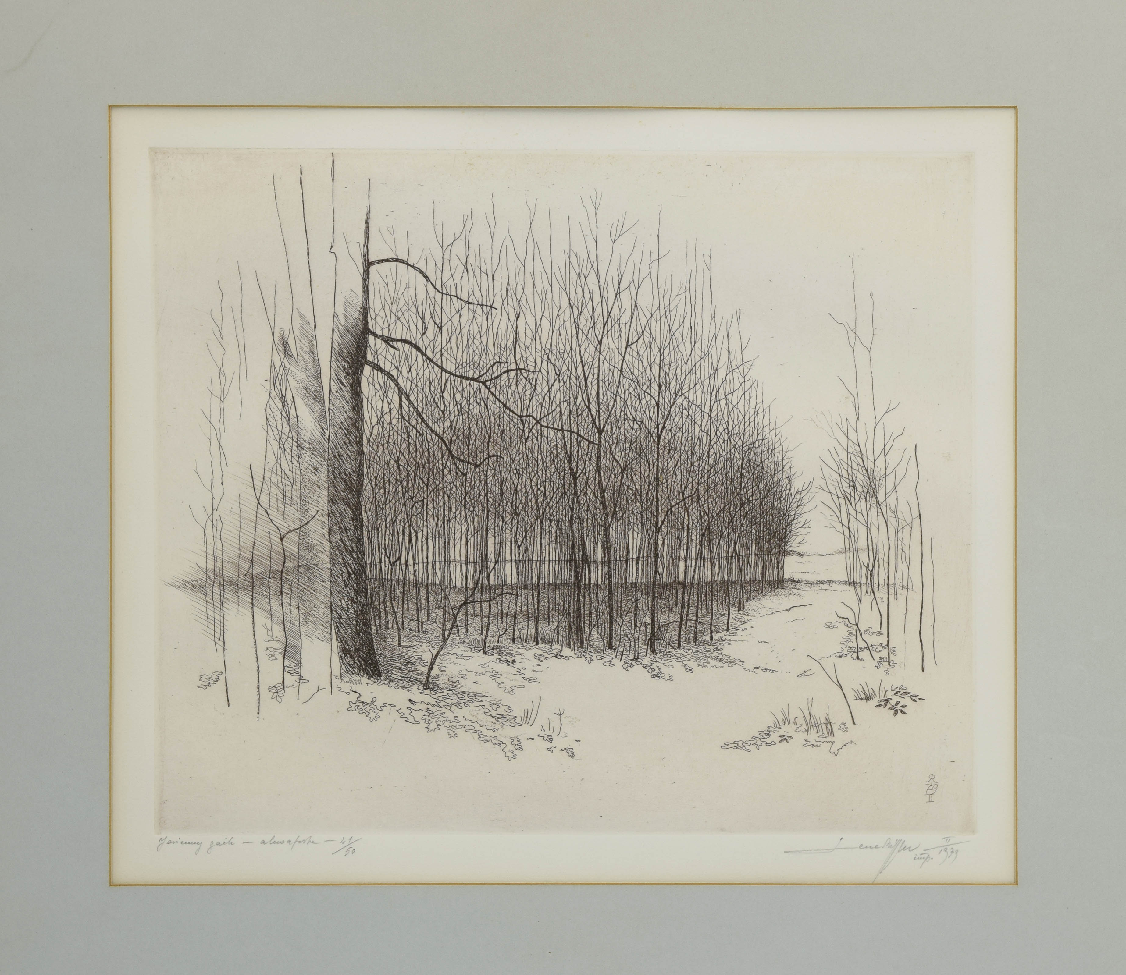 sygn., dat. i opisana u dołu: Jesienny gaik - akwaforta - 21/50 / LeszekRózga / imp. II / 1979 (ołówkiem).