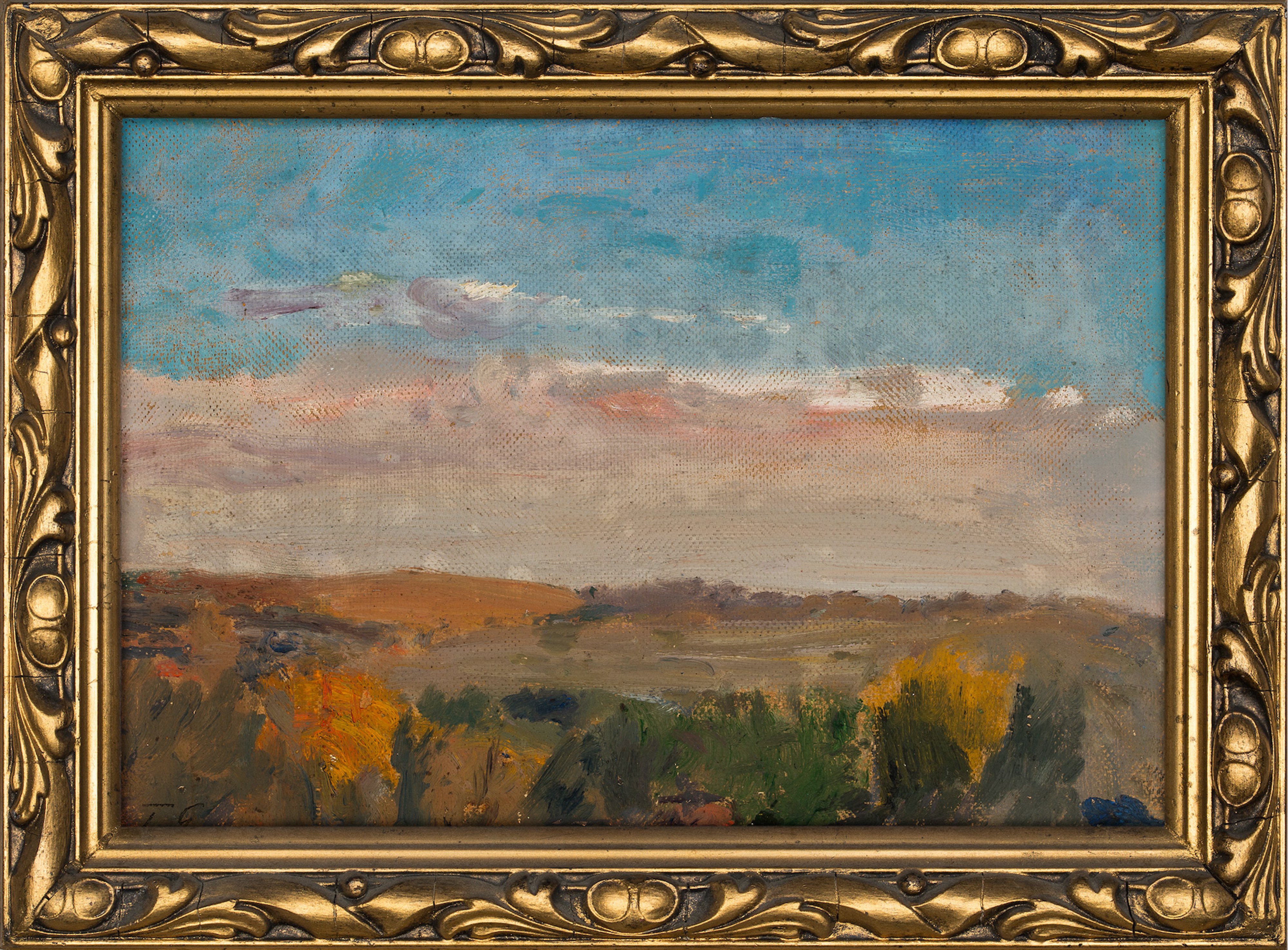 olej na tekturze, 20,5 x 29 cm, sygnowany monogramem w lewym, dolnym rogu: "T. G.".