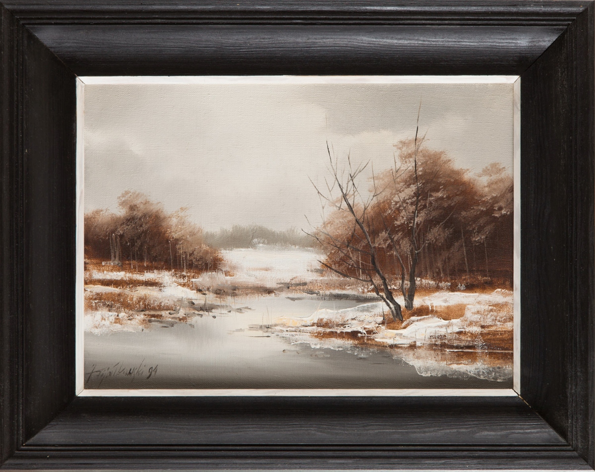 olej, płótno;24 x 33 cm;35 x 44 cm (oprawa, rama);sygn. i dat. l. d.: J. Fijałkowski 94;oprawa wymaga ponownego przymocowania