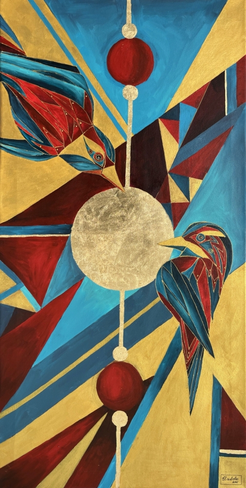 akryl, szlagmetal, płótno