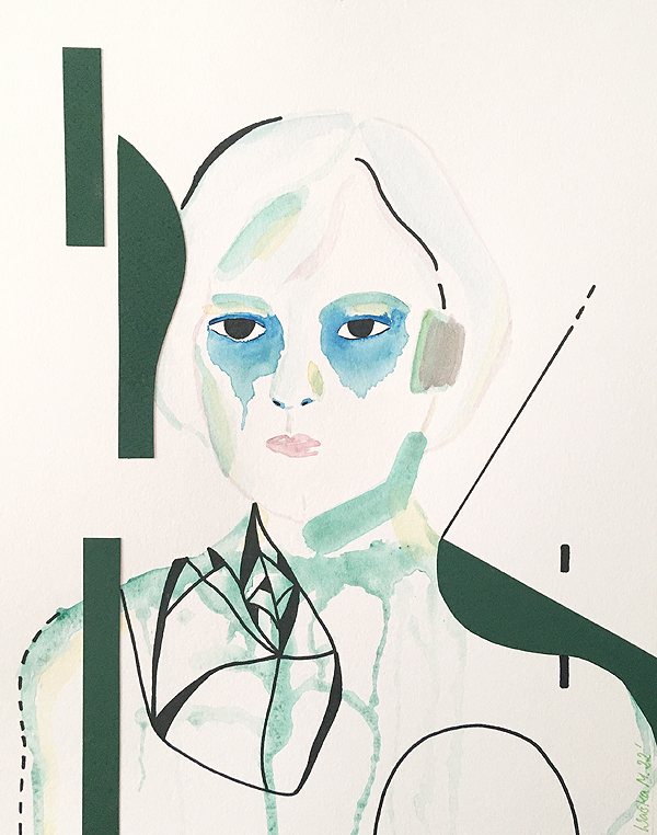 technika mieszana (akwarela, kolaż), papier, 40 x 30 cm,