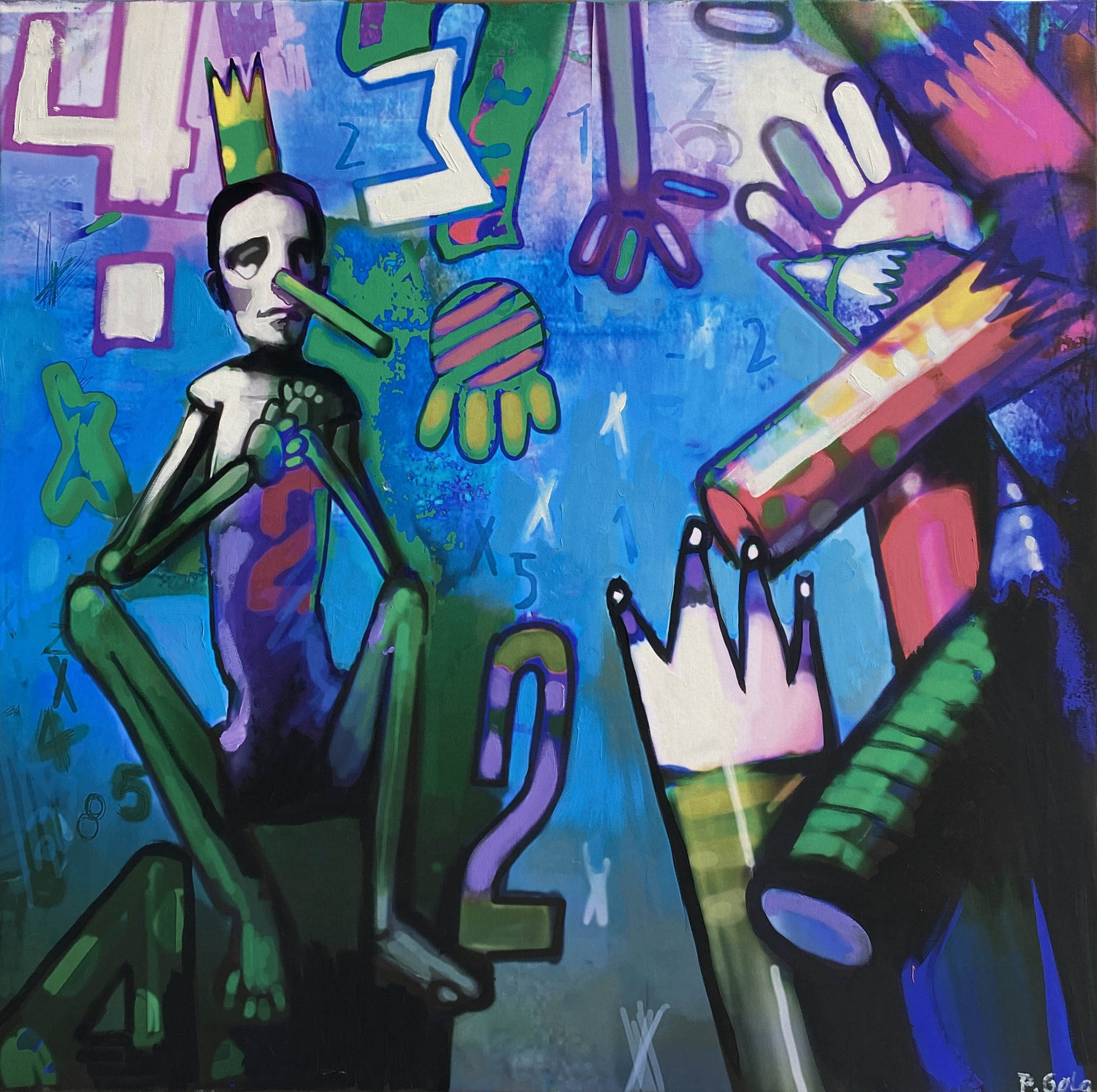 technika mieszana, olej, wydruk cyfrowy, płótno
