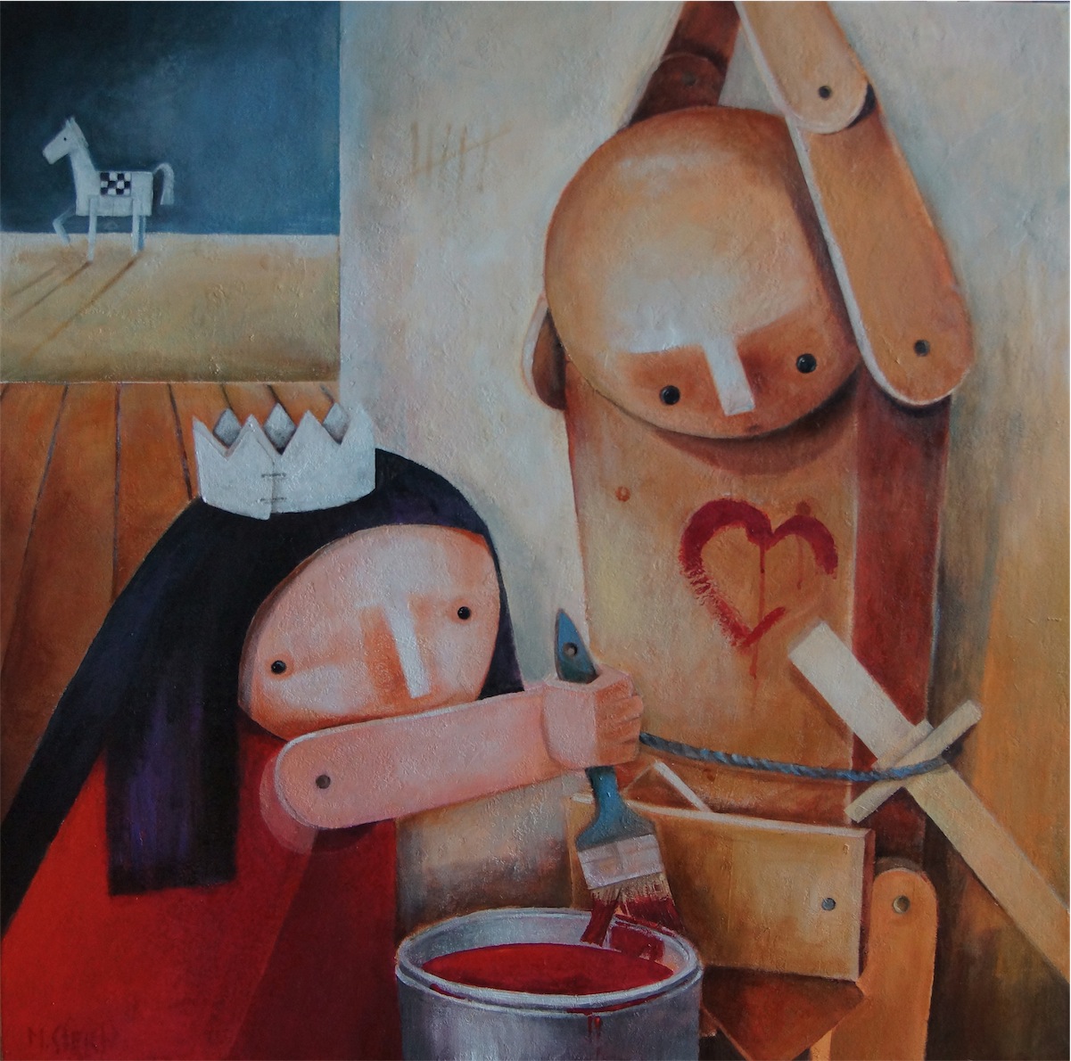 Najczęściej przedstawia ludzi pod postaciami drewnianych lalek, marionetek, kamiennych posągów, pozwalając im samym opowiadać własną, krótką historię na momentzatrzymaną w obrazie.