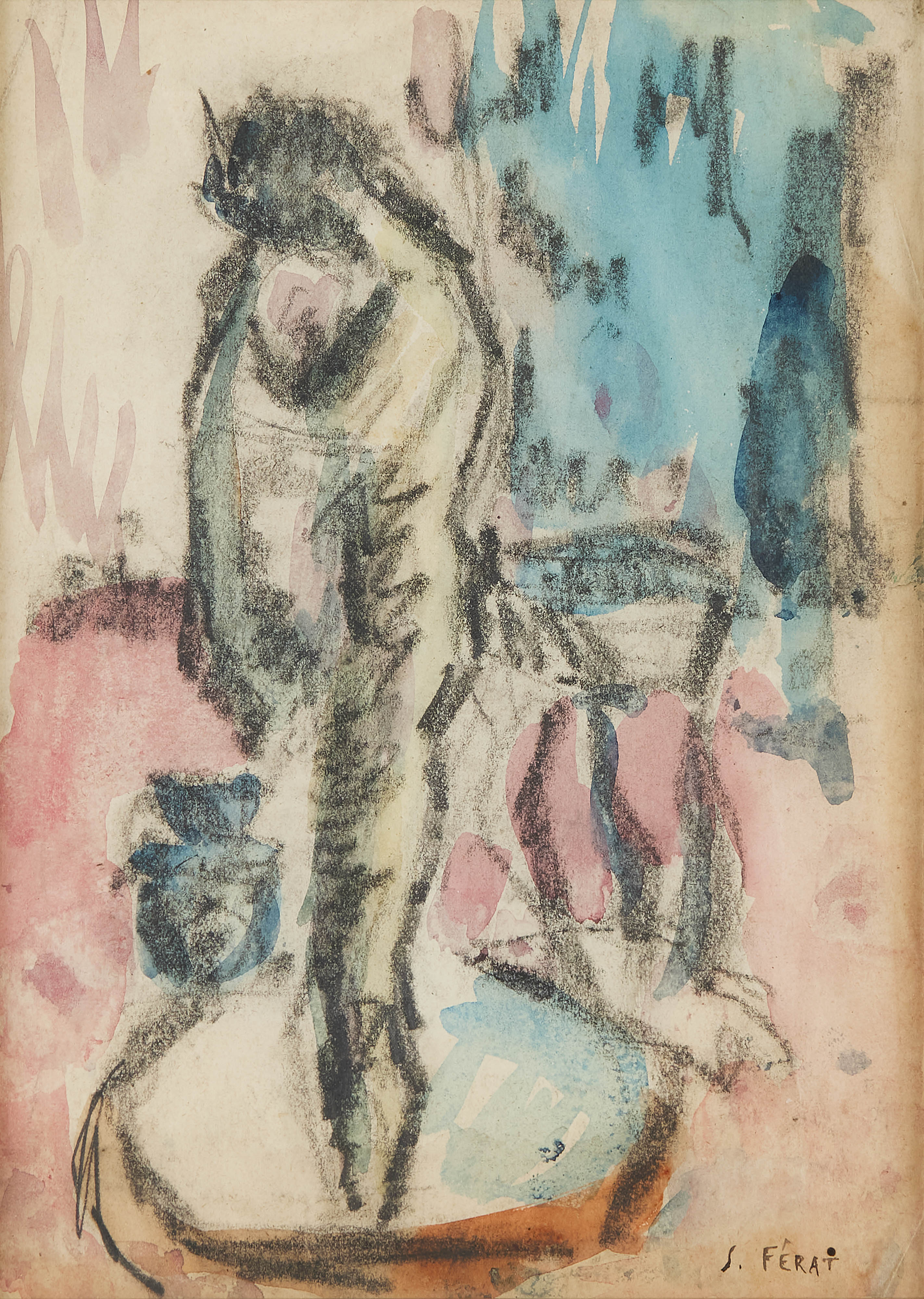 Akwarela i węgiel na papierze 21,5 x 15,5 cmSygn. p.d.:"S. Ferat"