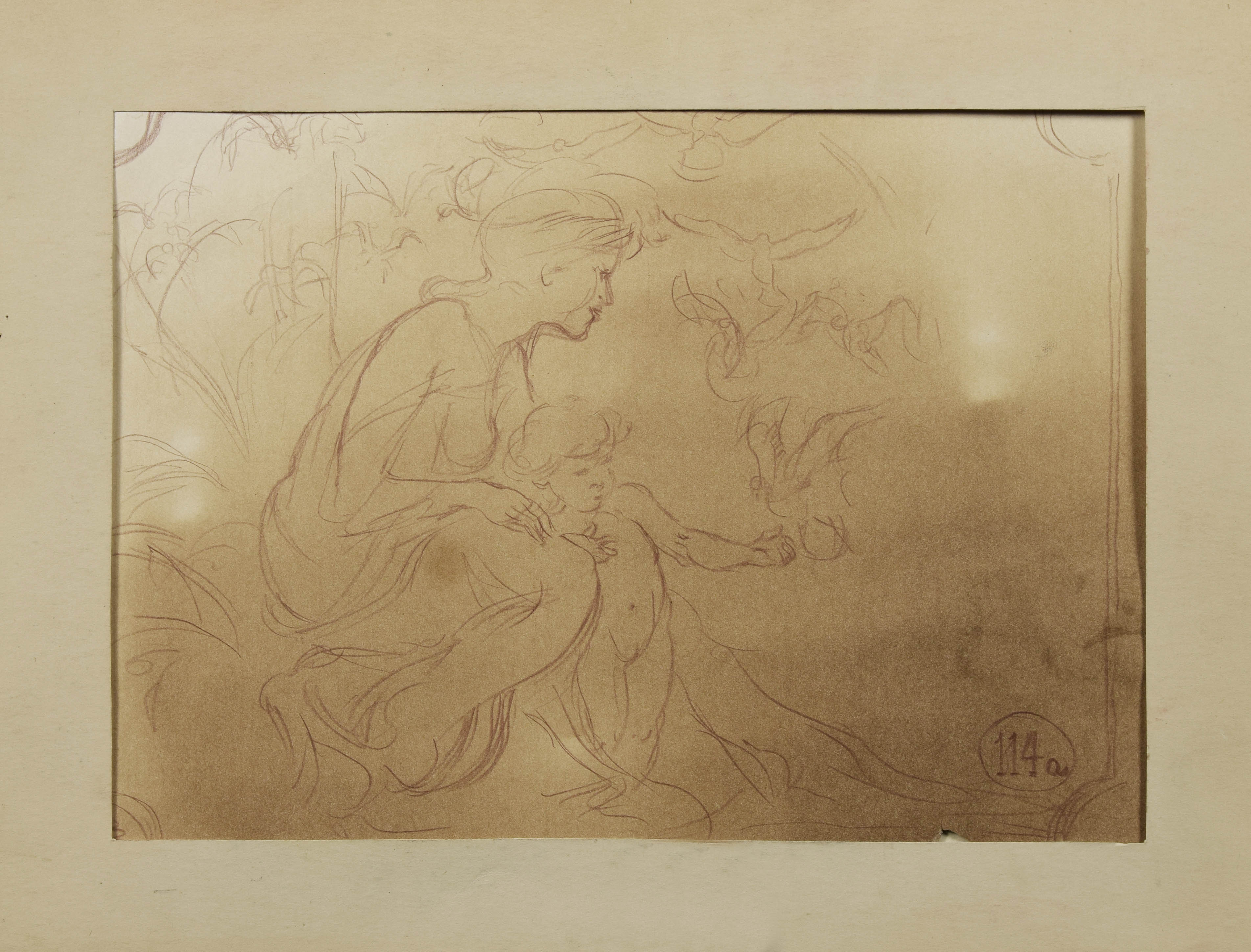 sangwina, papier; 20,6 x 29,6 cm; oznaczenie p. d.: 114a (w kółku); Stan zachowania: widoczne przebarwienia, ubytki i podklejenia papieru.