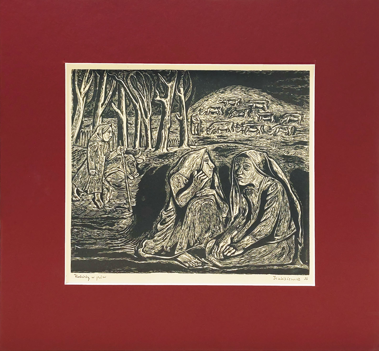 Kup abonament Wykup abonament, aby zobaczyć więcej informacjiTadeusz Kulisiewicz urodził się w 1899 r. w Kaliszu. Studiował w Szkole Sztuk Dekoracyjnych w Poznaniu, studia kontynuował w warszawskiej ASP w pracowniach M. i M. Kotarbińskich oraz u W. Skoczylasa. Debiutował na wystawie Stowarzyszenia Artystów Grafików Ryt. Przez pierwsze lata twórczości poświęcił się głównie pracy drzeworytniczej. W czasie wojny przebywał w Szlembarku /tam powstał wczesny cykl drzeworytów/ i Krakowie - doskonalił w tym czasie swoją podstawową technikę - rysunek. Po wojnie powstał cykl Warszawa 1945. Dużo podróżował, odwiedził Chiny, Meksyk, Brazylię, Indie, kraje Europy. Podróże stały się inspiracją do artystycznych cykli rysunków obrazujących odwiedzane kraje - ich pejzaż, przyrodę a przede wszystkim żyjących tam ludzi. Operował niezwykle lapidarną, oszczędną kreską, uzyskując rysunek o bardzo silnym, czytelnym wyrazie. Lubił rysować sylwetki kobiet, akty - poświęcił temu tematowi dużą część prac. Był profesorem ASP w Warszawie. Zmarł w 1988 r.