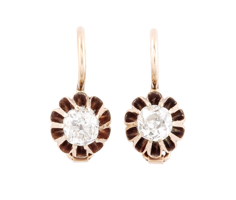 złoto p. 0,580, m. 1,72 g, 2 brylanty w starym szlifie ok. 0,70 ct