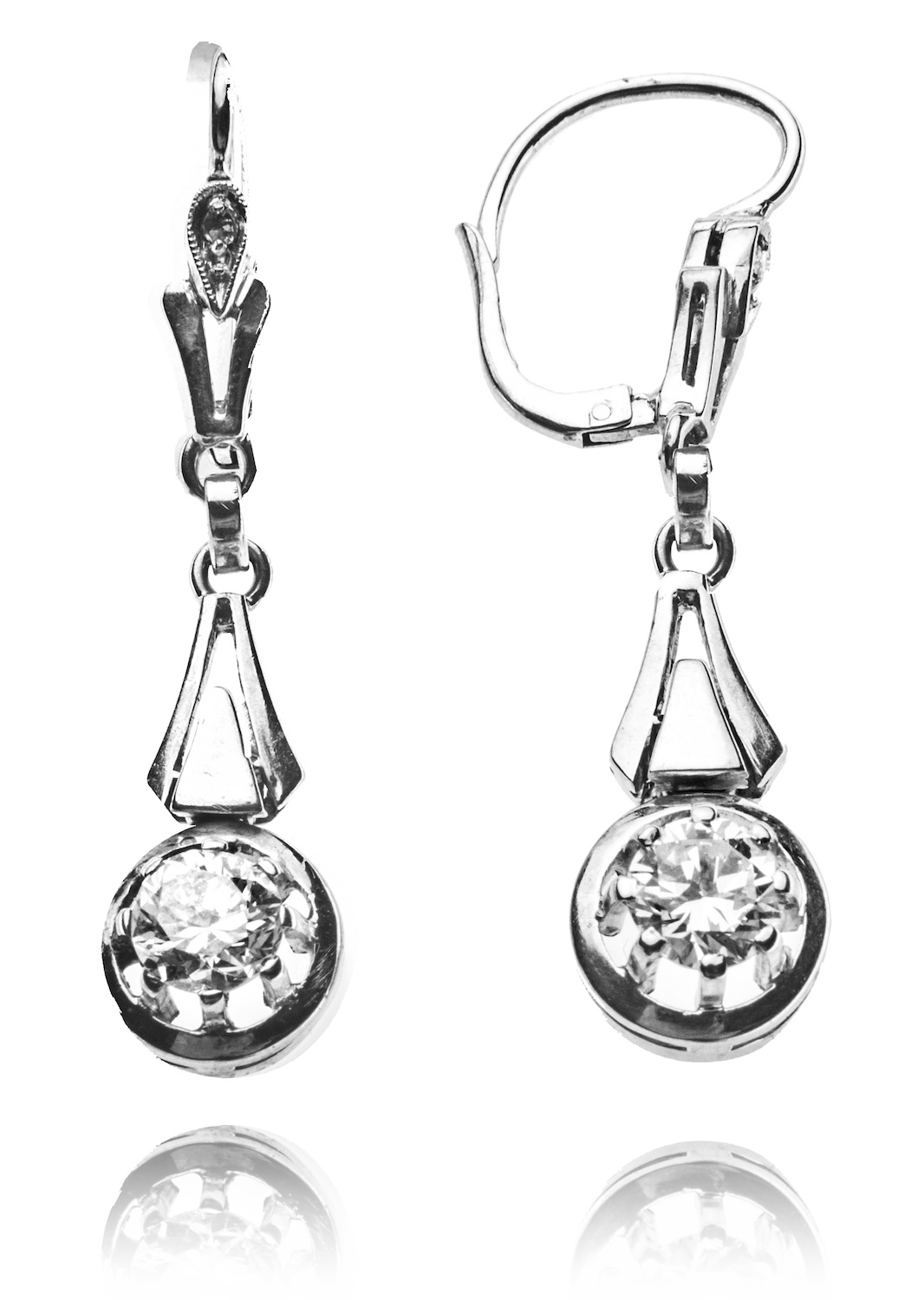 2 brylanty o masie łącznej około 1,05ct J-K/VS2masa wyrobu: 4,25g czas powstania: Europa Zachodnia, lata 50-60. XX w.