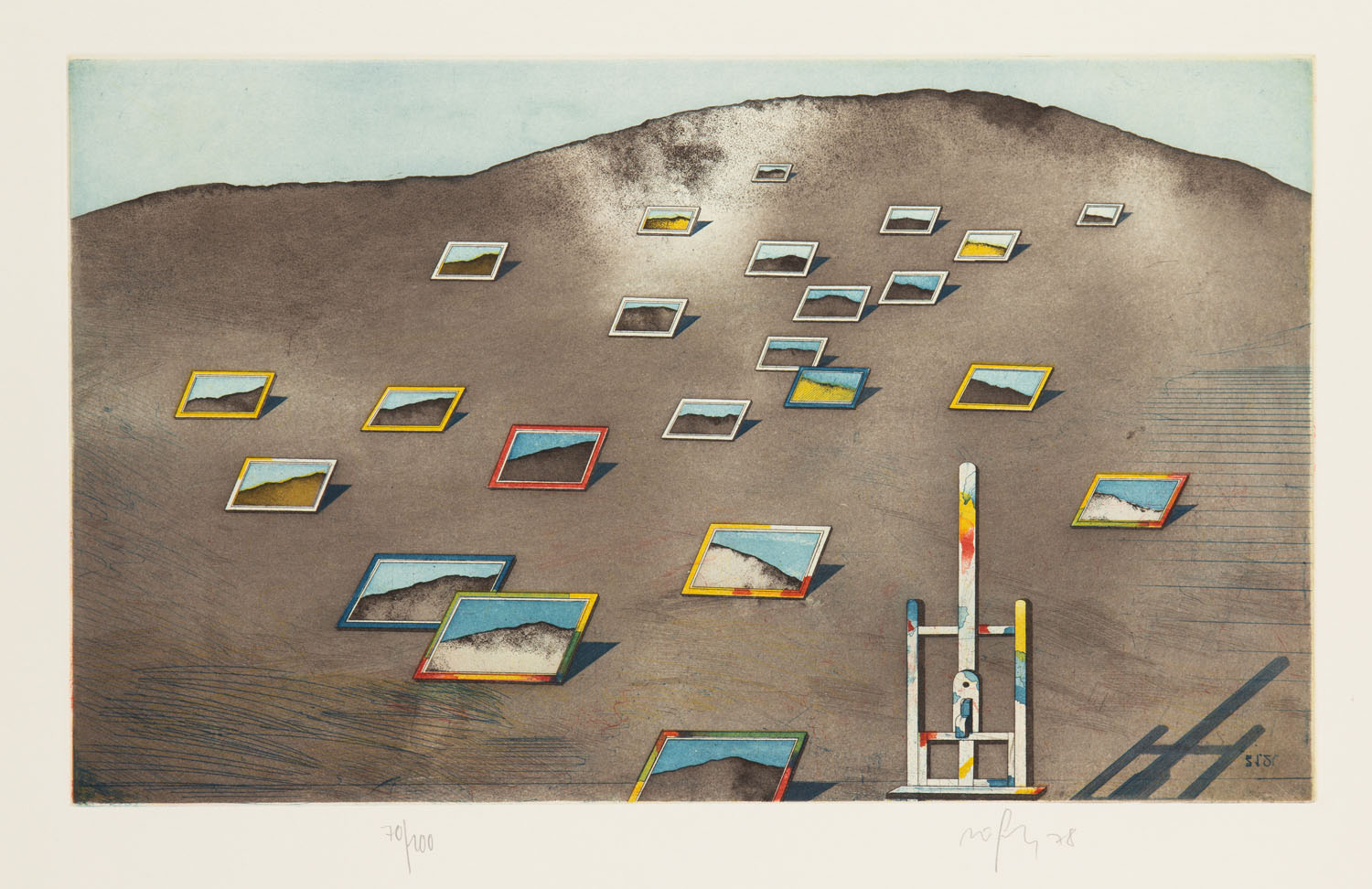 akwaforta, akwatinta barwna/papier, 54 x 76 cm (arkusz)sygnowany i datowany ołówkiem p.d.: 'nöfer 78' oraz opisany l.d.: '70/100'