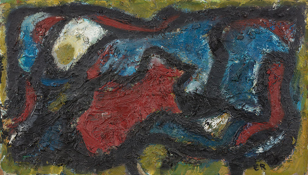 olej, płyta25,5 x 45,5 cmsygn. p.d.: ER, sygn. i opisany na odwrociu: Erna Rosenstein / POLEN