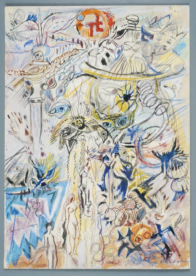 tempera, kredka, papier; 32,2 x 22,8 cm;