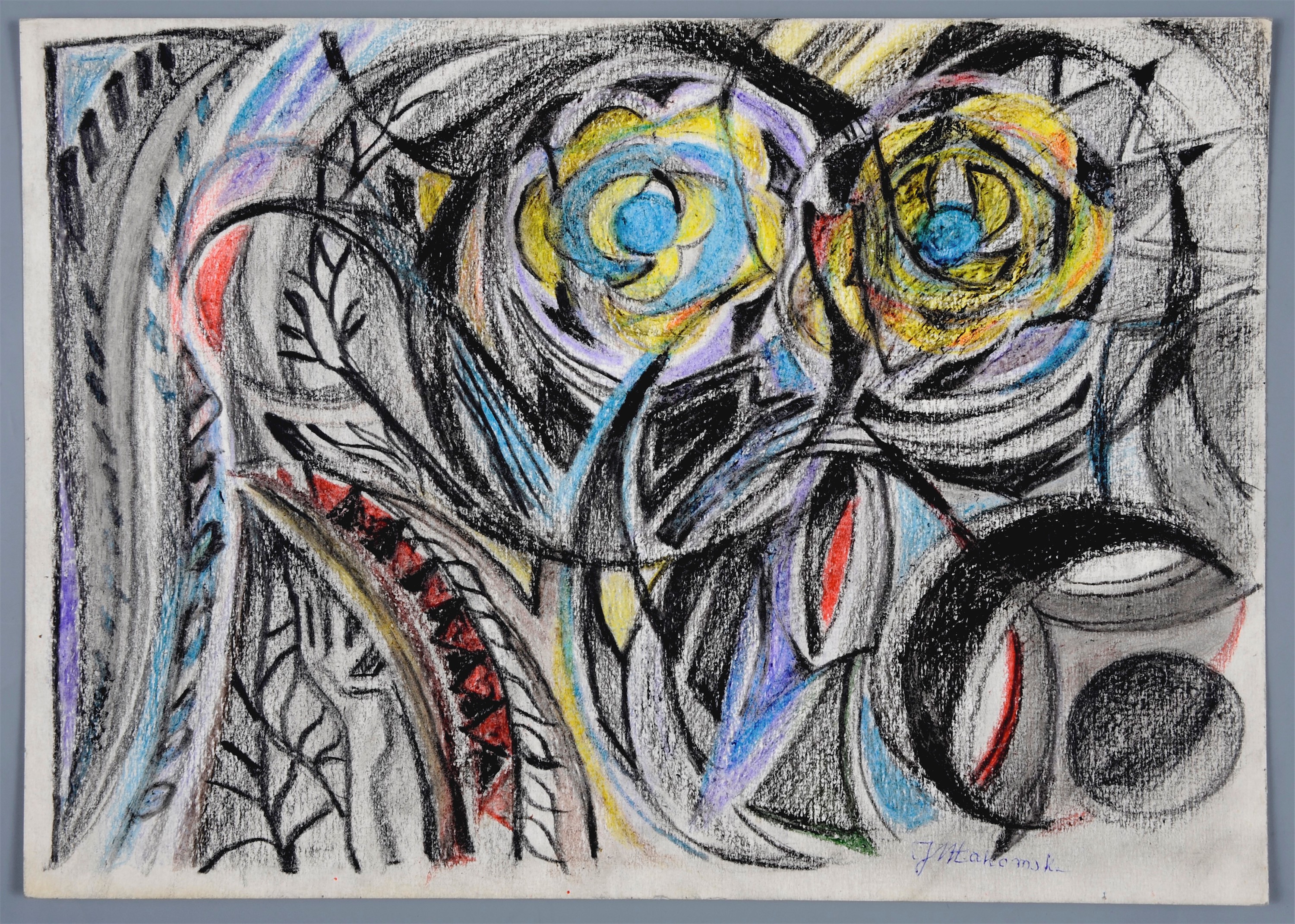 kredki świecowe karton, 23 x 32,5 cm;sygn. p. d.: JMŁakomska (niebieskim długopisem)