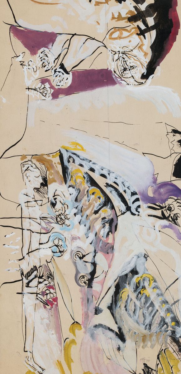 Tusz, piórko, gwasz; 47x 23 cm