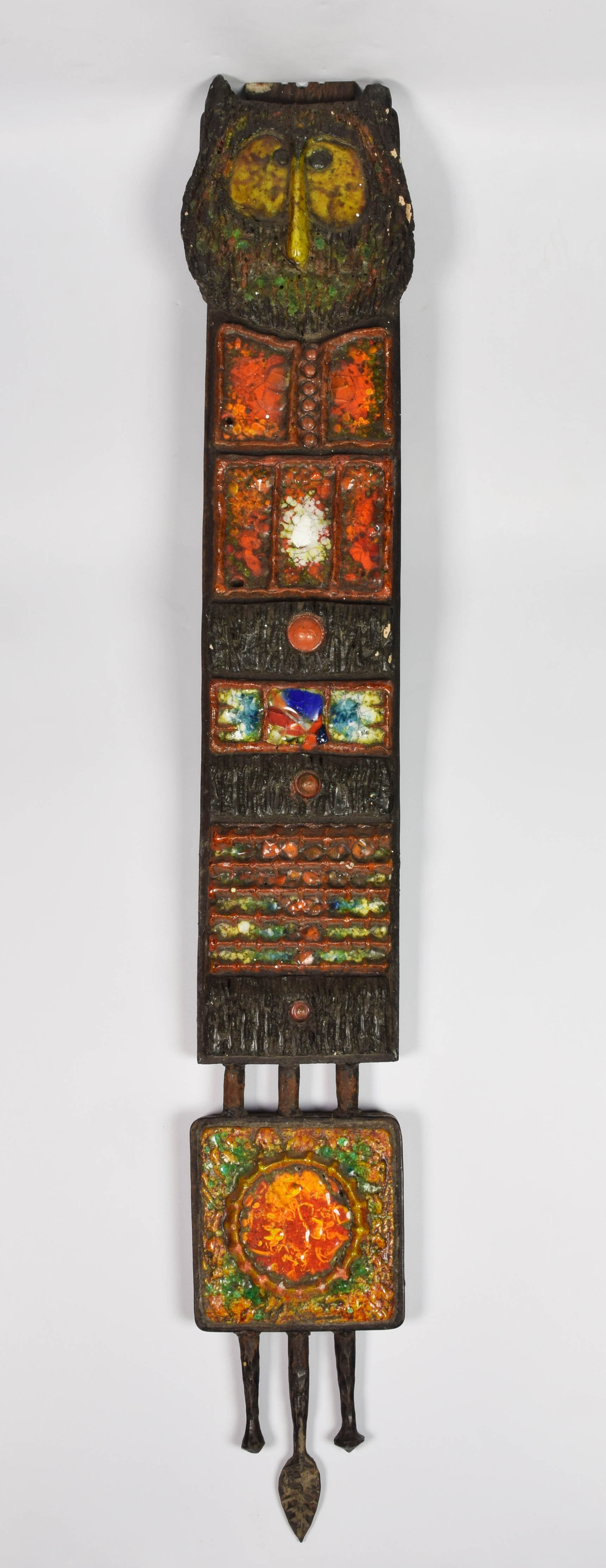 ceramika szkliwiona, metal; 113 x 30 cm;stan zachowania: ubytki rogów (uszu), pęknięcie technologiczne.