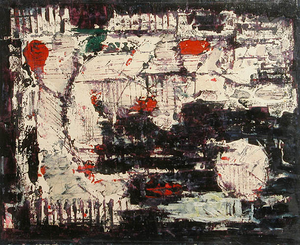 Na odwrocie naklejona kartka - wycinek z pierwotnej oprawy z autorskim napisem: Czekaj Fr.; oraz kartka z tekstem pisanym na maszynie: CZEKAJ Franciszek "Kompozycja" olej