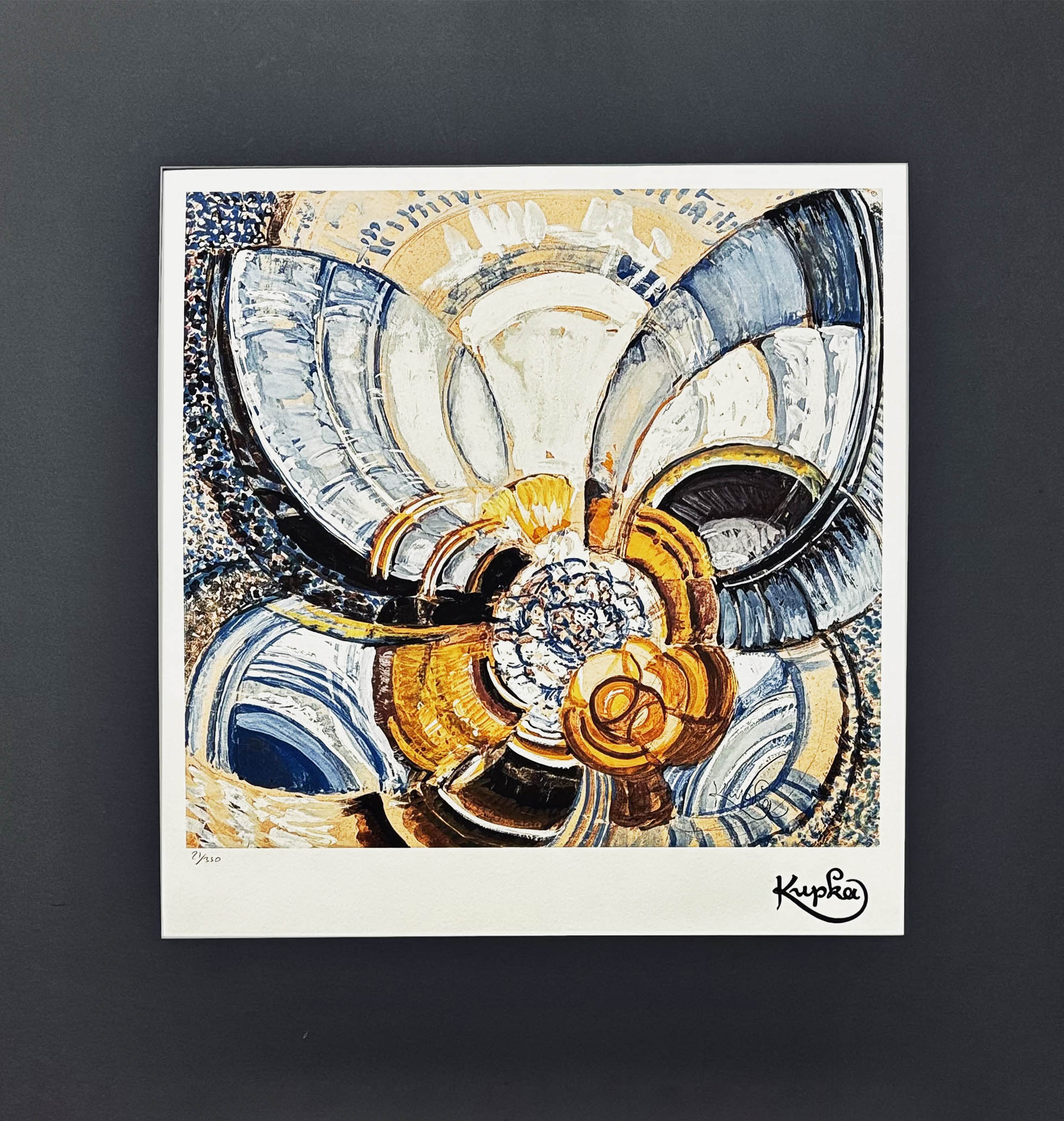 Litografia, papier o wysokiej gramaturze Cotton Cream, wymiary: 44 x 46 cm (kompozycja), 70 x 50 cm (arkusz), edycja limitowana, numerowana odręcznie 21/350, sygnowany na płycie, pod kompozycja faksymile podpisu KUPKA p.d., sucha pieczęć CMOA ( Carnegie Museum Of Art.) l.d., sucha pieczęć wydawcy SPADEM PARIS p.d.(SPADEM jest to francuski odpowiednik ZAIKSU), na odwrociu hologram „verification of authenticity”. Oryginalny certyfikat.