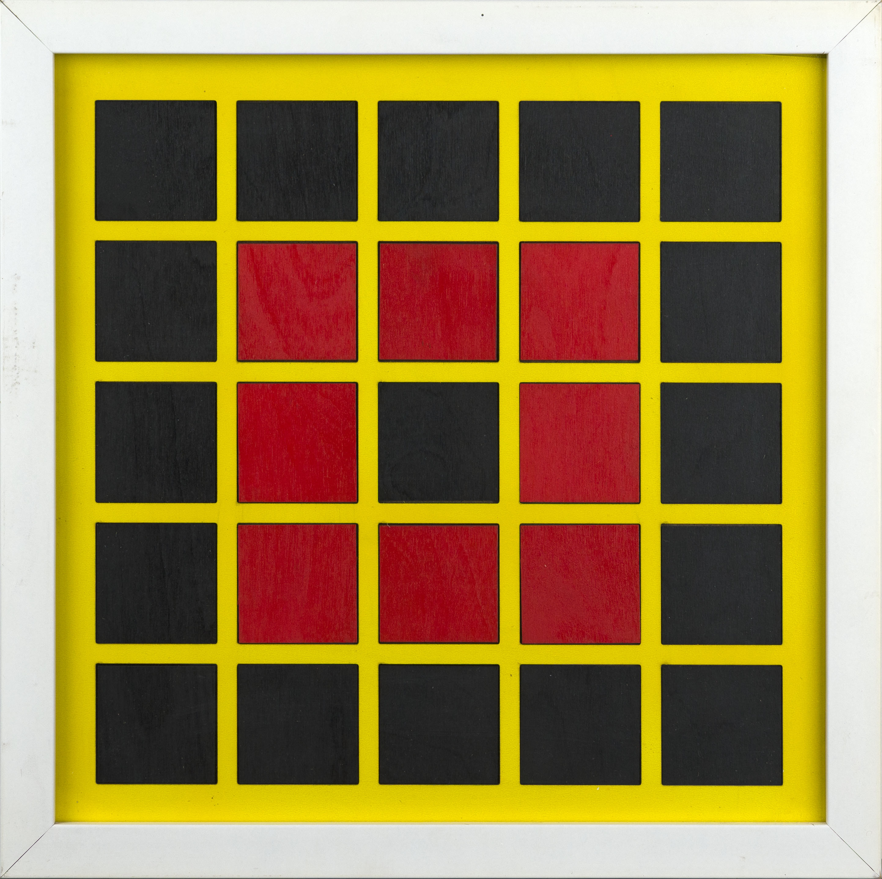 Kompozycja z czerwonymi i czarnymi kwadratami