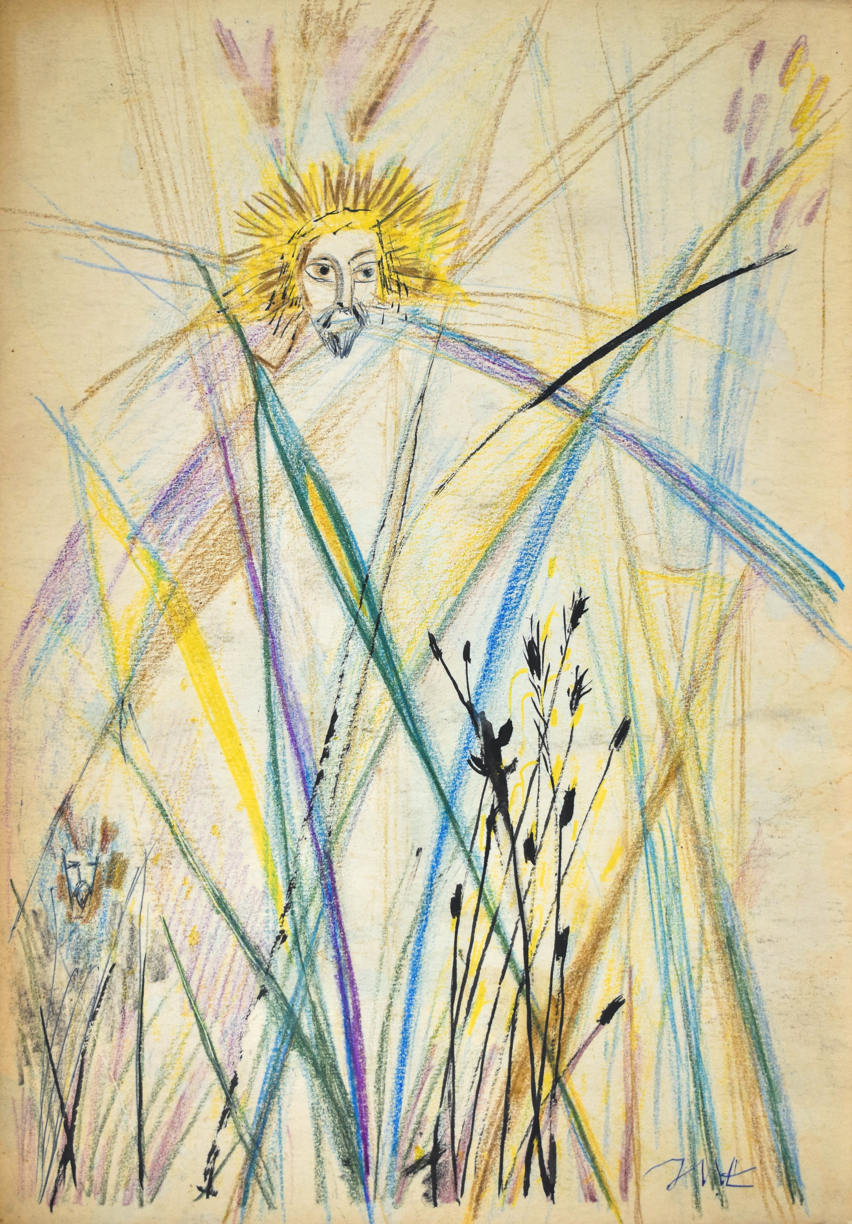 kredki, tusz, karton, 32,4 x 22,8 cm;