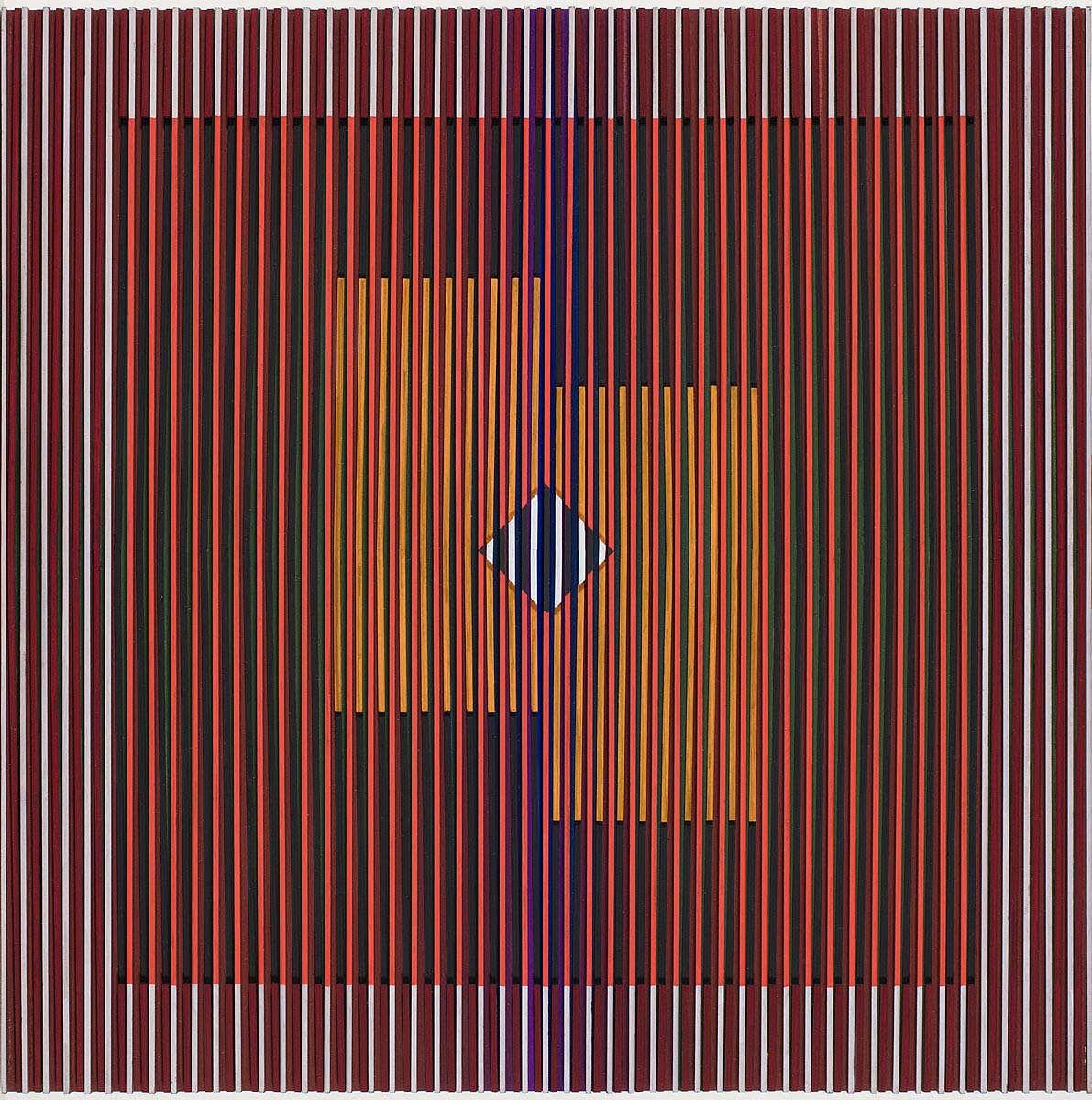 akryl, relief, płyta100 x 100 cmsygn. i opisany na odwrociu: Kompozycja / z nadmiarem czerwieni / 25.08.17 / A. NOWACKI 2017