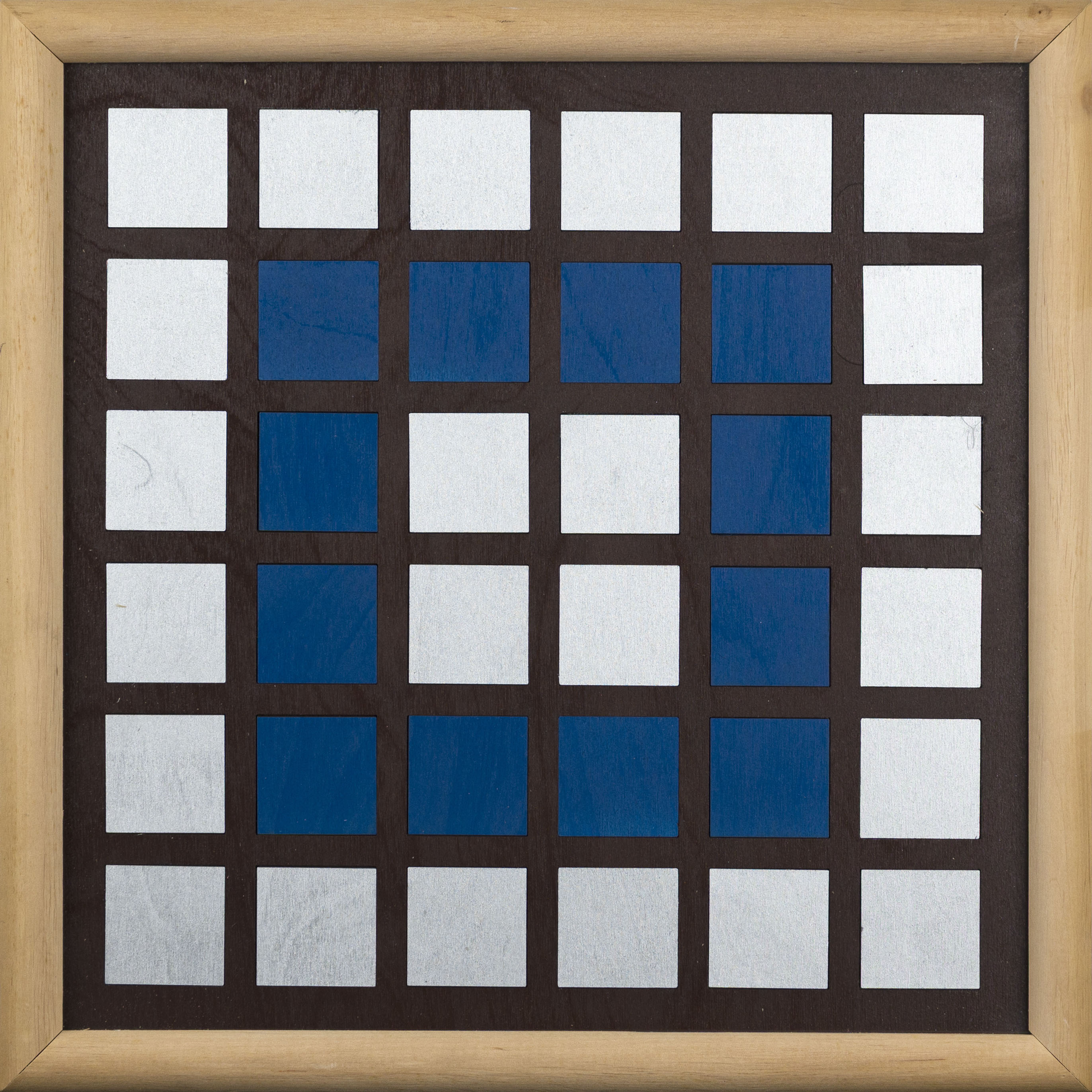Kompozycja z niebieskimi i srebrnymi kwadratami