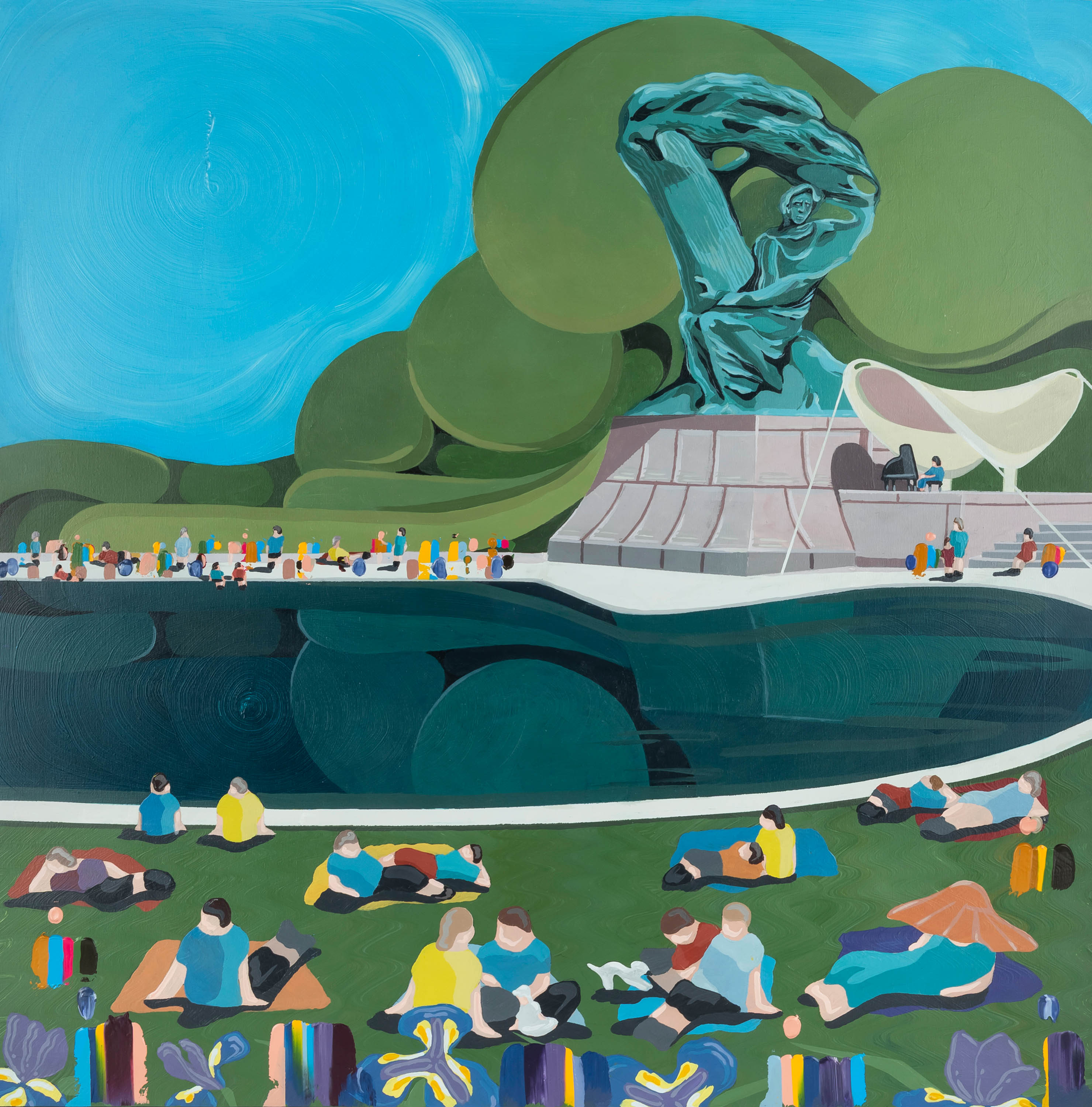 akryl, płótno, 90 x 90 cm, opisany, dat. isygn. Koncert z irysami / 2025 / Damian Lisiewski / Subtelność jest moją odwagą