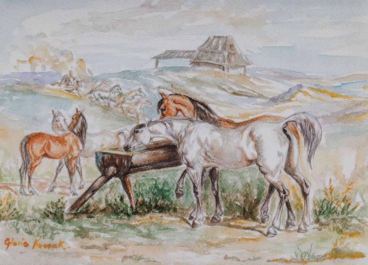 Akwarela, papier; 20 x 28,5 cm (w świetle ramy)Sygnowany l.d.: Gloria Kossak