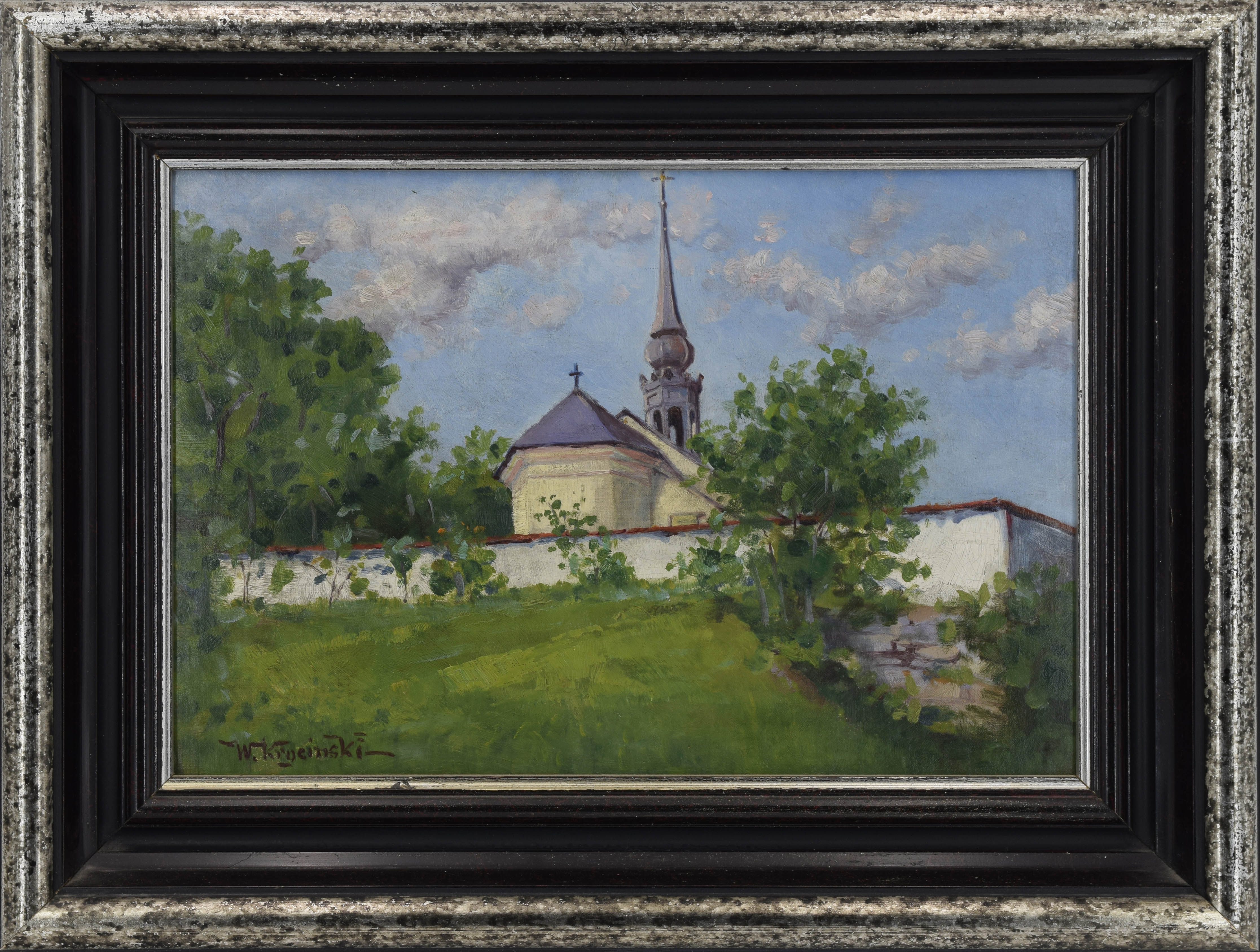 olej, tektura; 23 x 33,5 cm;sygn. l. d.: W. Kryciński;na odwrocie nalepka Z. ZIEMBICKI KRAKÓW PLAC MARYACKI 2, z autorem, tytułem: Kościół … (słabo czytelnie) i numerem: 2674.