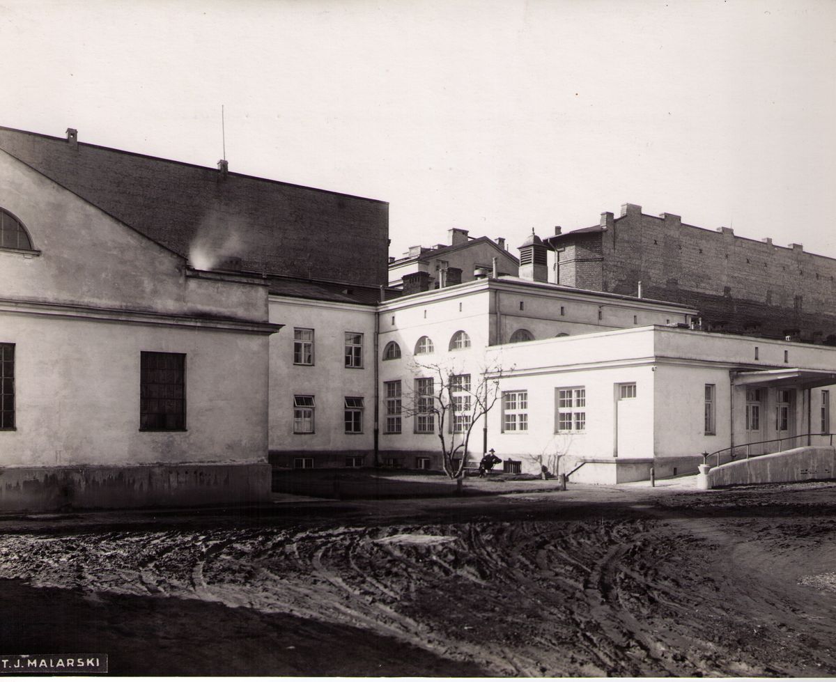 Na odwrocie stempel: Agencja Fotograficzno-Prasowa / Jan Malarski / Chmielna 10, tel. 224-20 / Prawo reprodukcji zastrzeżone; maszynopis: budynek kuchni i centralnej kotłowni szp. Sw. Stanisława dnia 13.X.1930 roku