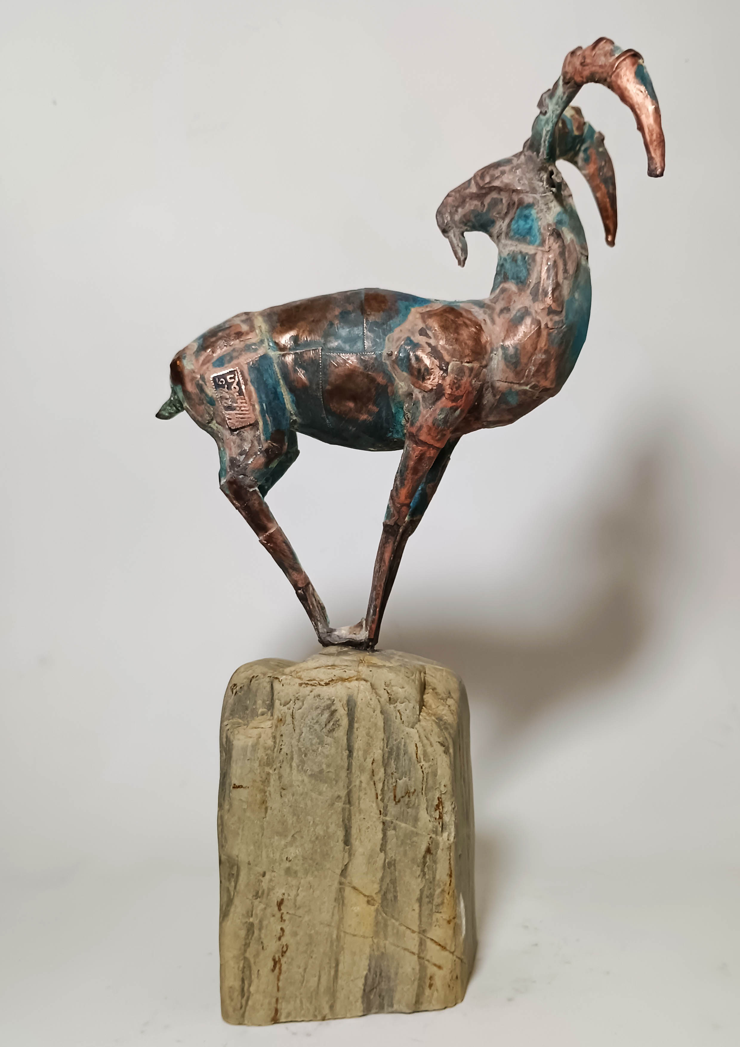 miedź, postument z kamienia, ok. 35 x 19 x 11 cm,