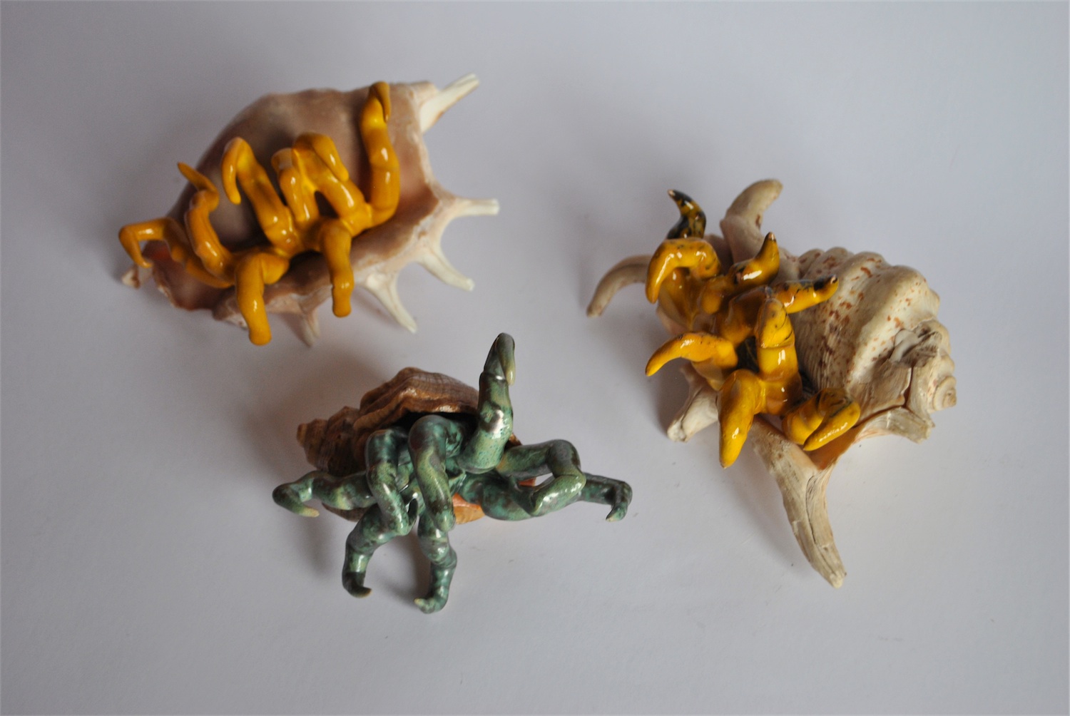 ceramika, muszla, 16,5x10,5x10 cm, 17x8x9,5 cm, 12x9x8,5 cm
