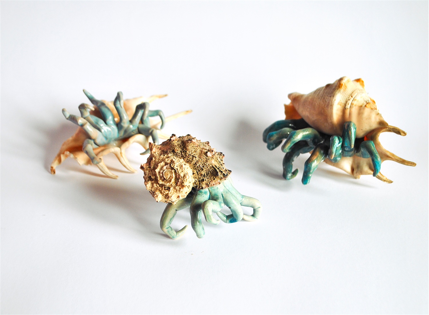 ceramika szkliwiona, muszle, 14x10x10 cm; 14x6x8 cm; 8x8x10 cm