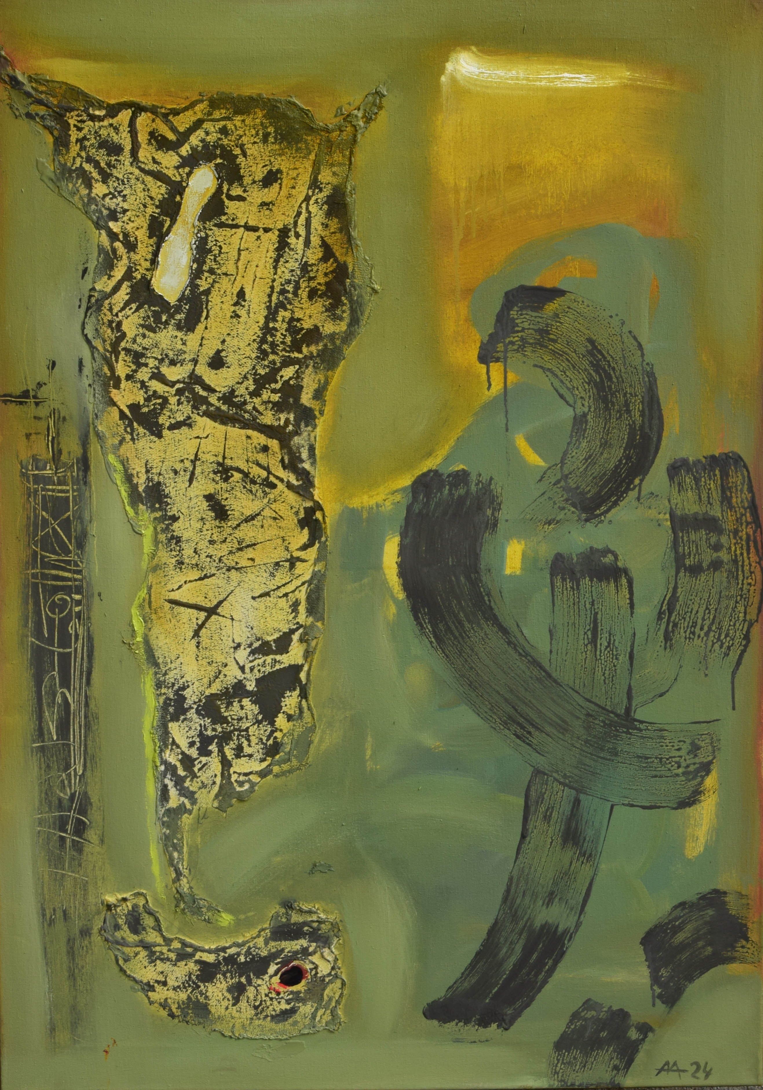 technika mieszana (olej, akryl, technika autorska), płótno, 100 x 70 cm,