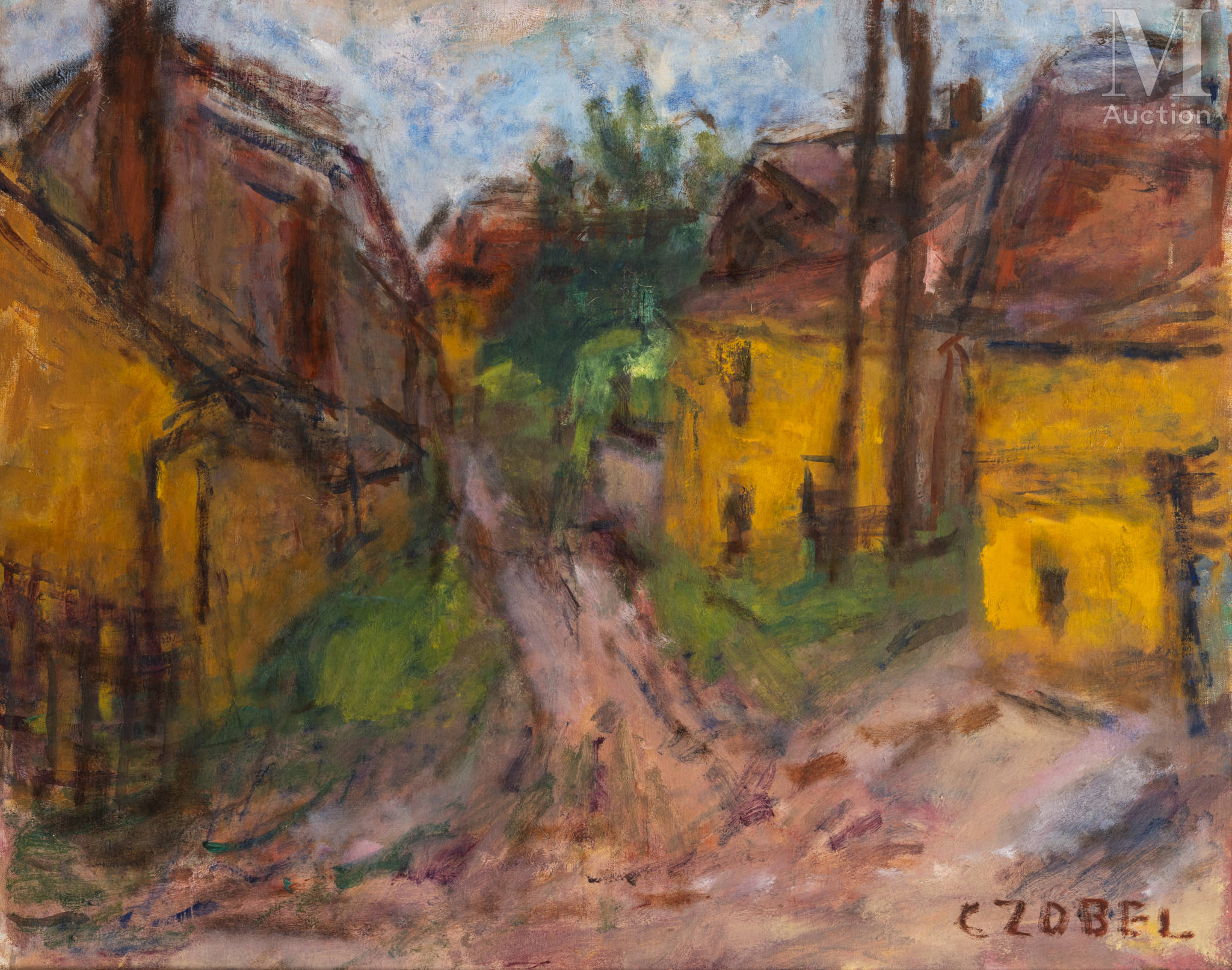 Na tym obrazie domy o czerwonych dachach i żółtych ścianach przywodzą na myśl stare uliczki Szentendre, jakie można zobaczyć do dziś.