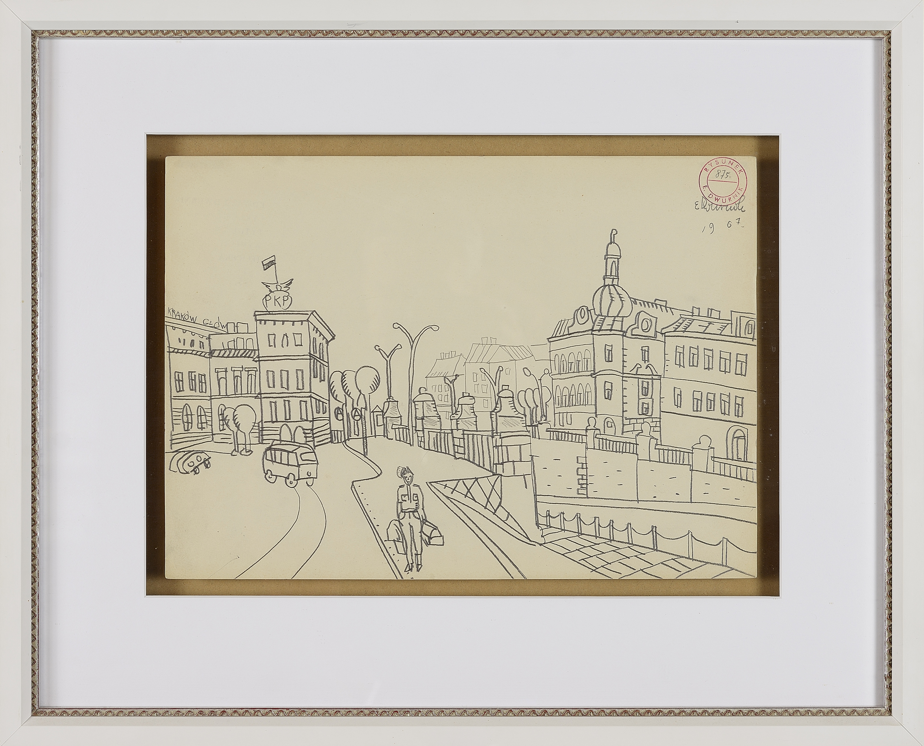 sygn. p.g.: E. Dwurnik 1967, pieczątka rysunek 875, na odwrocie pieczątka (cykl 34 Kraków).