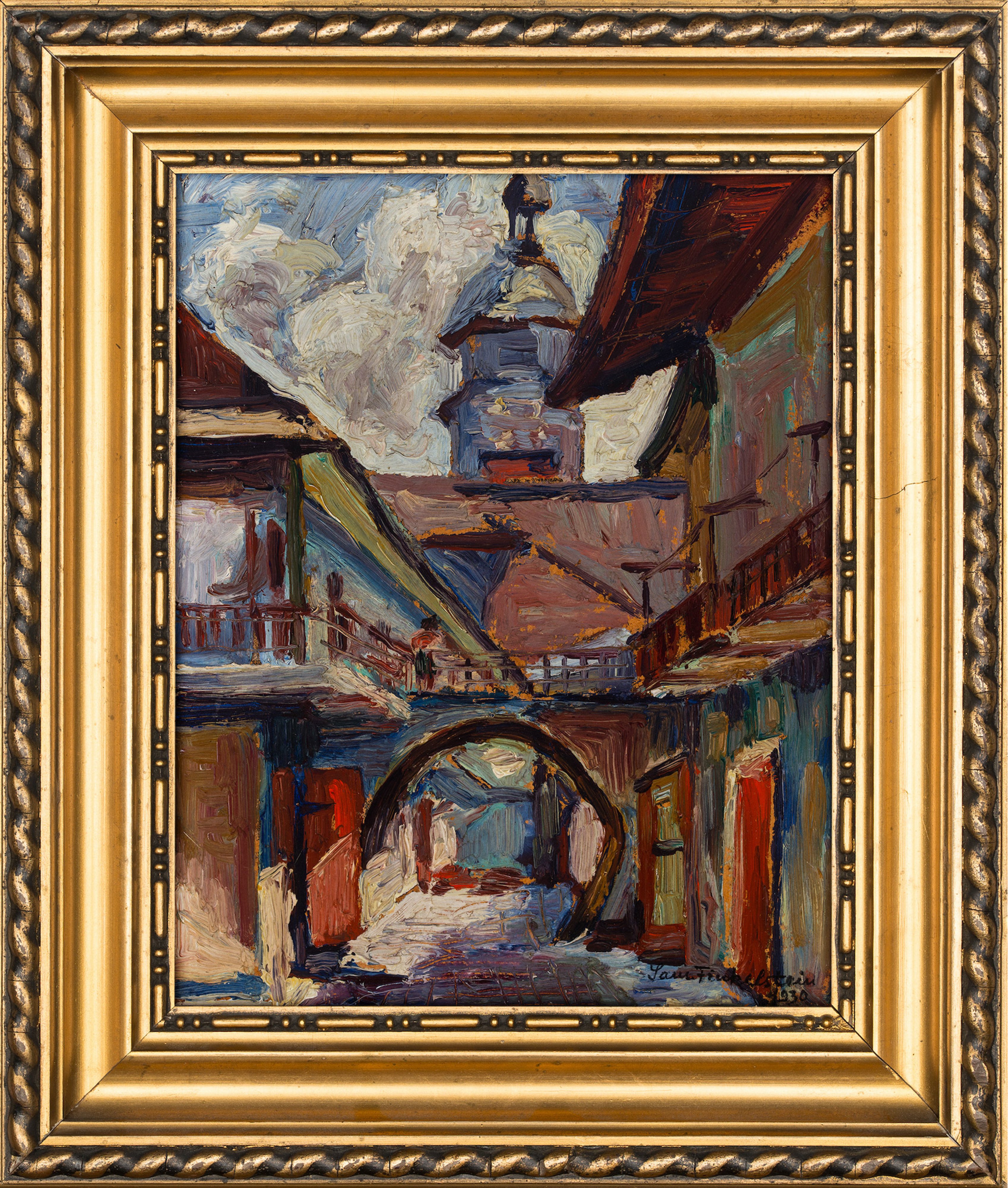olej na tekturze, 1930 rok, 24,5 x 19 cm, sygnowany i datowany w prawym, dolnym rogu: "Sam Finkelstein | 1930".