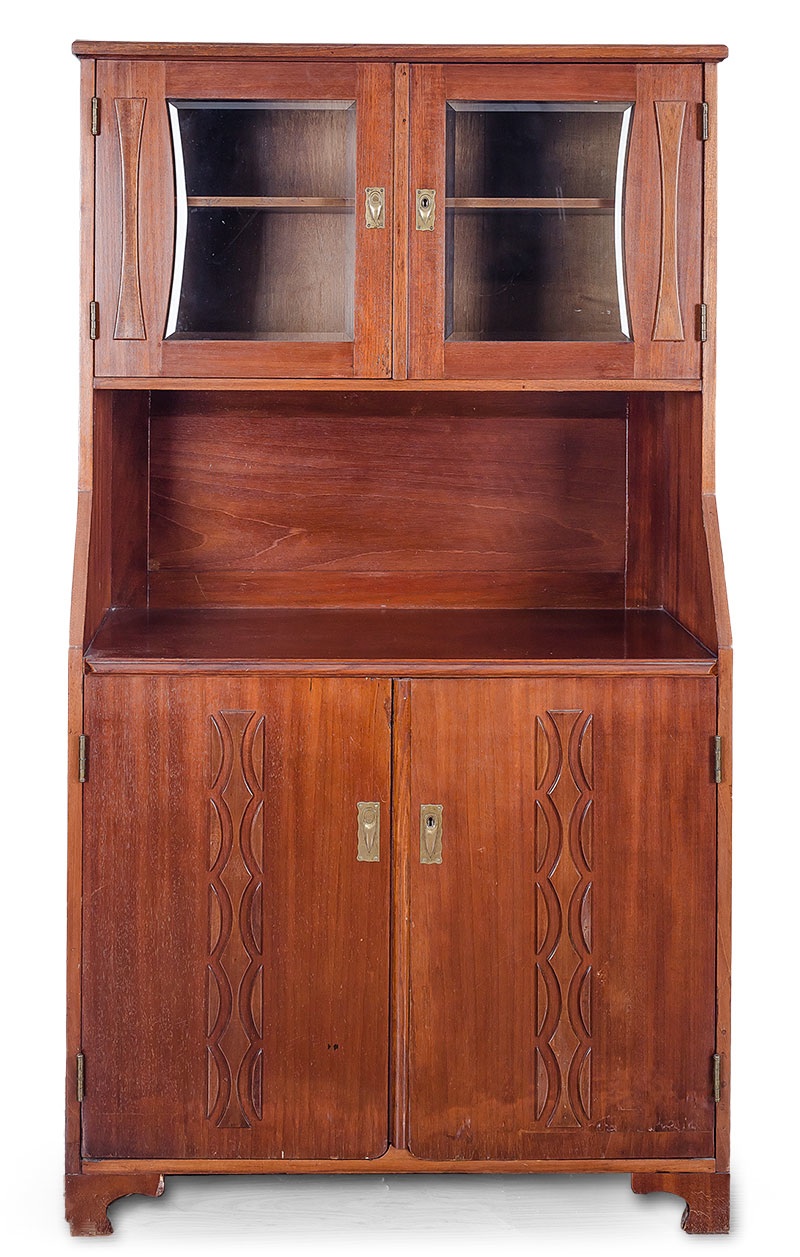 konstrukcja sosnowa i mahoniowa, fornir mahoniowy,wewnątrz plakietka firmowa, "Theophil Muller, Dresden 21"wys. 154 cm, szer. 87 cm, gł. 40 cm