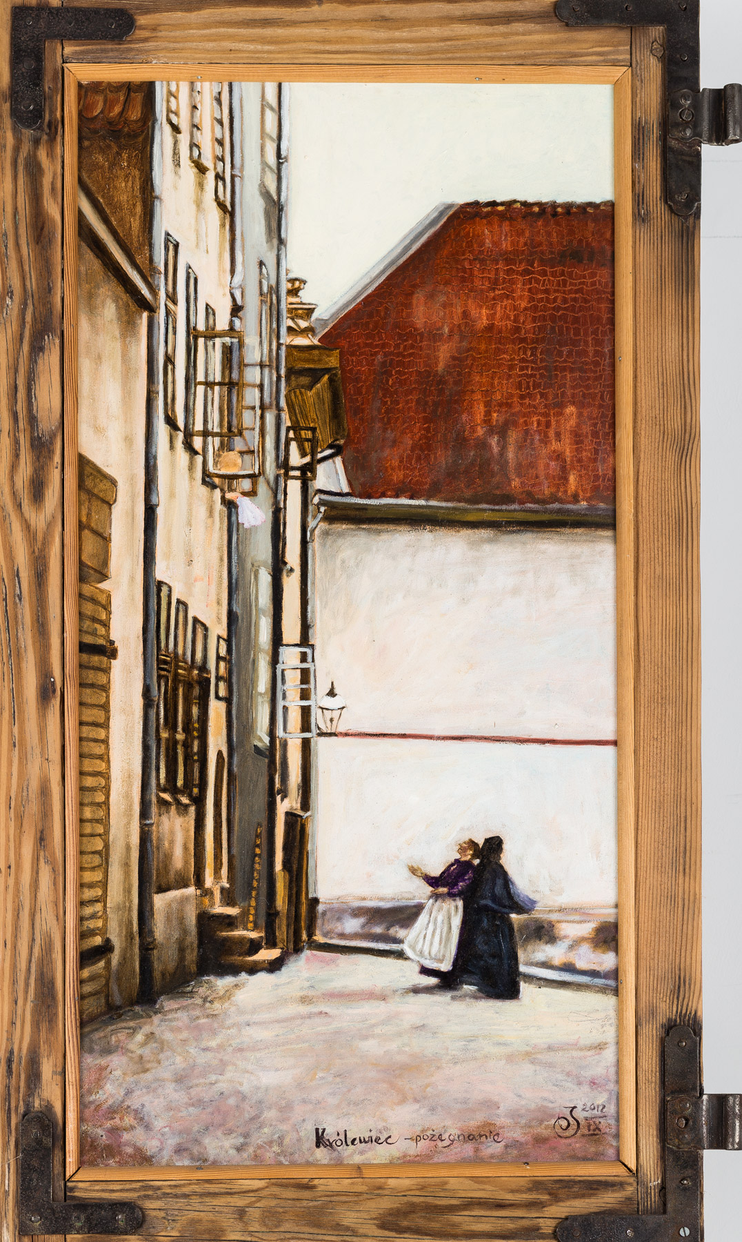olej/płyta, 70 x 35 cmsygnowany monogramem wiązanym p.d.: JD 2012/ IX" oraz opisany śr.d.: "Królewiec - pożegnanie"