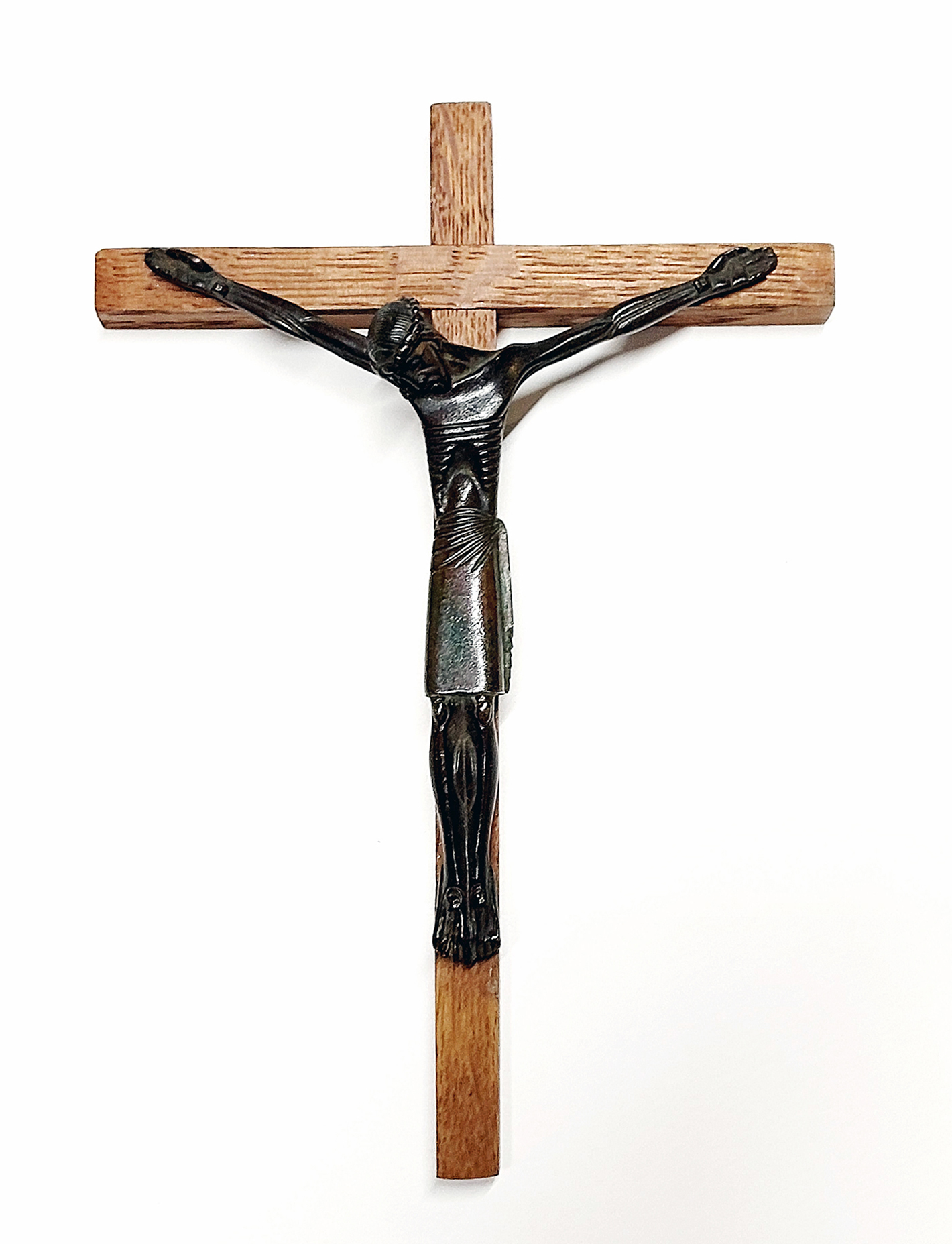brąz, drewno,11,5 cm x 13 cm (wymiary figury)13,5 cm x 19,5 cm (wymiary krzyża)sygnowany l.b.: "Lambert Rucki"