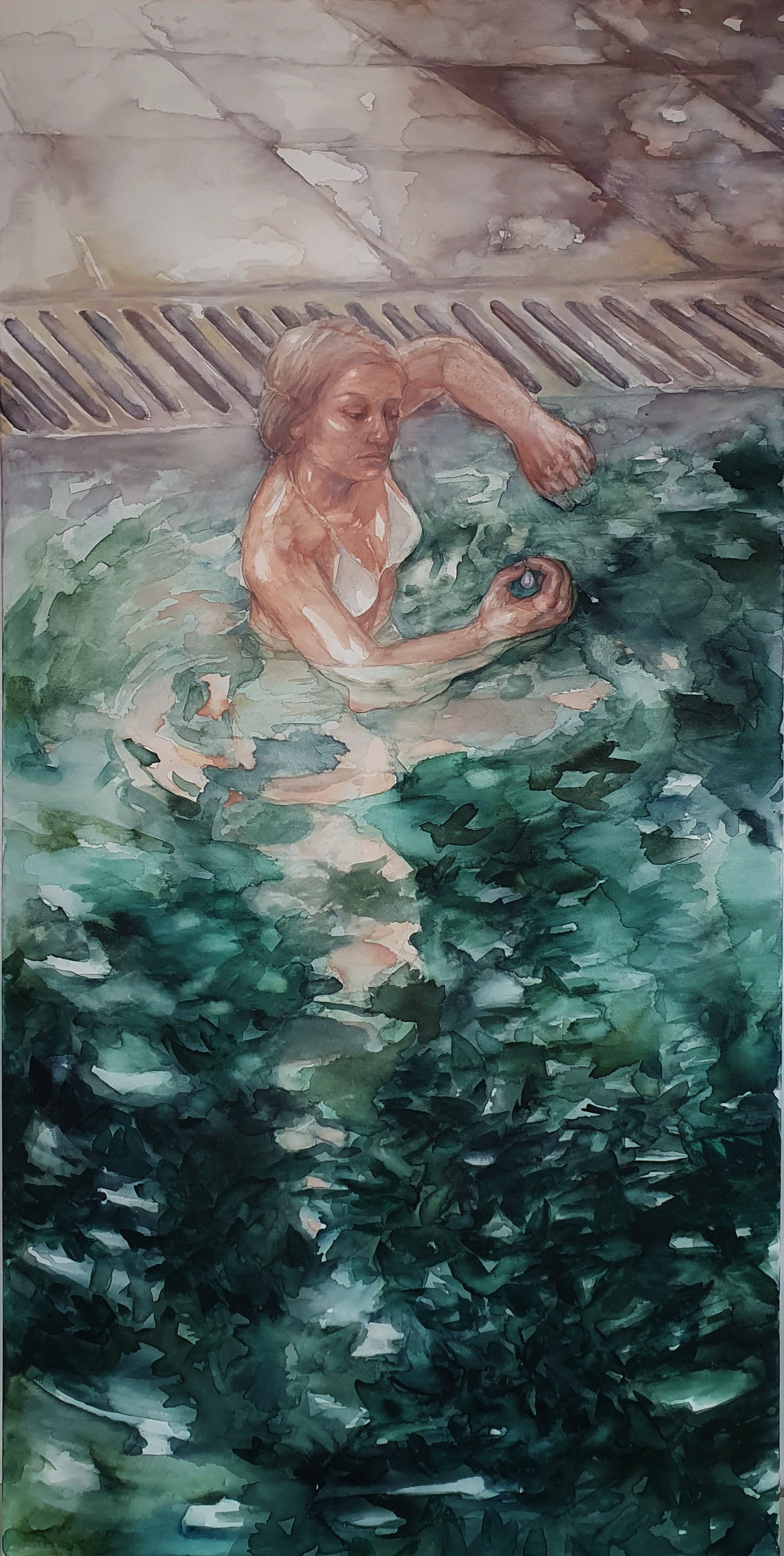 technika mieszana (akryl, akwarela, pigmenty z gumą arabską), płótno, 140 x 70 cm,