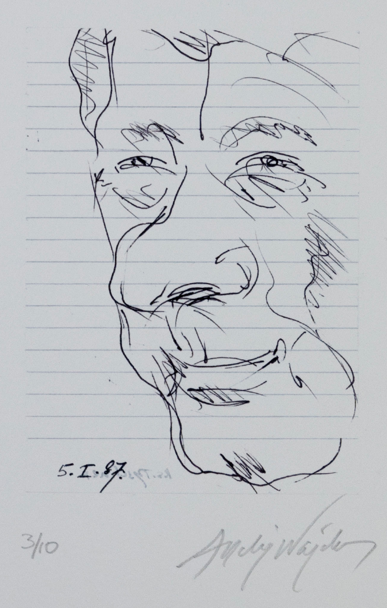 inkografia, papier Fabriano 300g zadruk: 15 x 10,5 cm rozmiar arkusza: 30 x 40 cm data powstania oryginału: 5.01.1987 sygn. ołówkiem: l.d.: 3/10; p.d: Andrzej Wajda; u dołu stempel wytłoczony: ORIGINAL ART - WAJDA - LIMITED EDITION