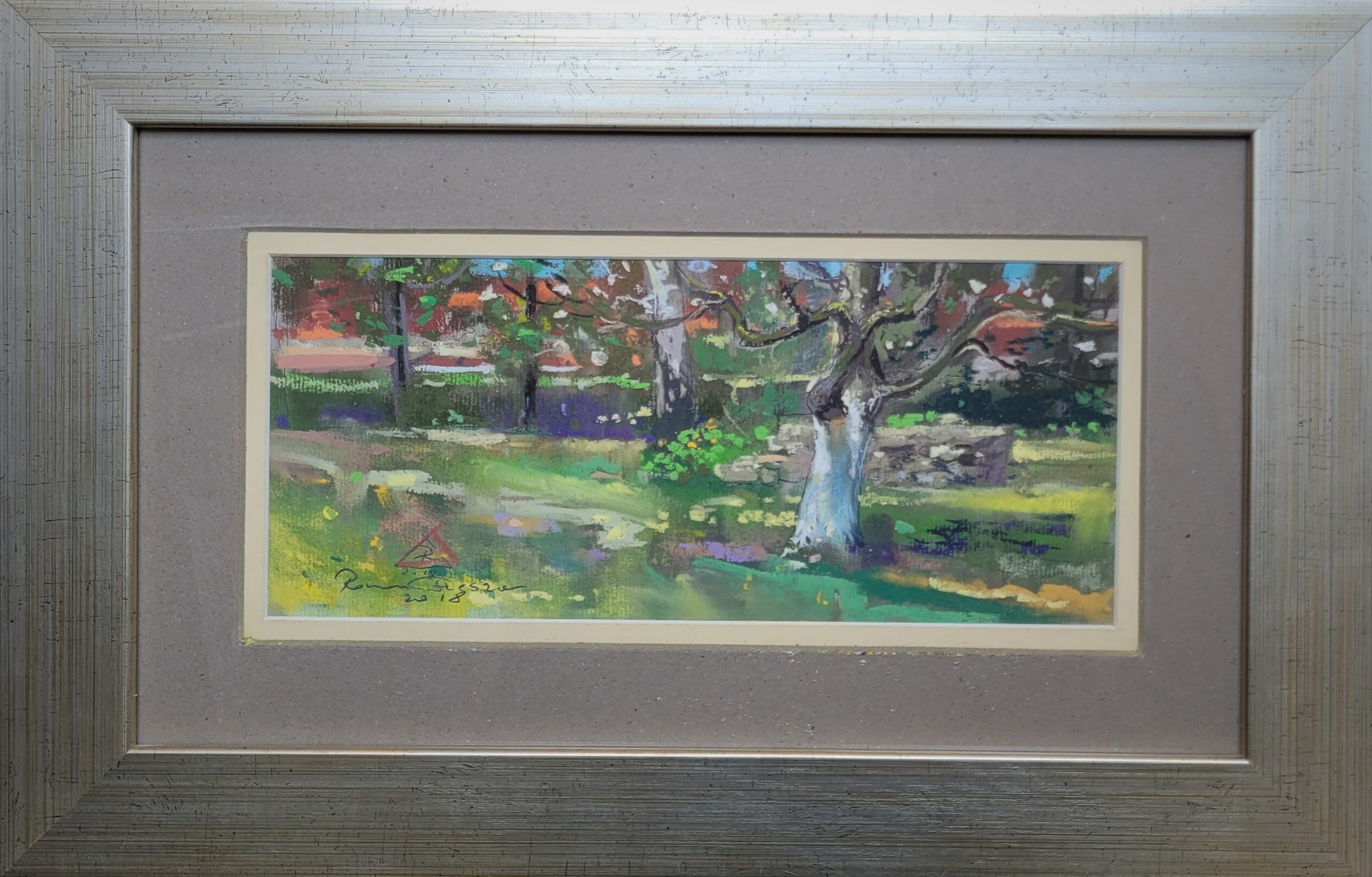 Akwarela, papier, 12 x 29 cmSygn. Roman Fleszar 2018, oraz na odwrociu Roman Fleszar 'Księżny Dwór' 2018, oprawiony