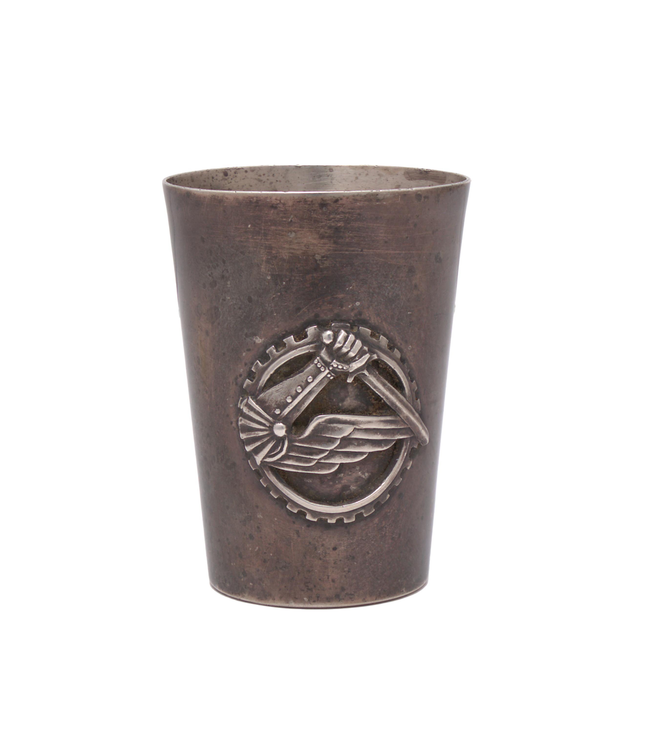 srebro pr. 925, m. 75 g, wys. 74 mm emblemat „Ramię Pancerne” – odznaka Wojsk Pancernych, w dnie napisy: „ARMIA POLSKA W WIELKIEJ BRYTANII”, „W.BUSZEK / LONDON”, „SREBRO” oraz pr. srebra „925” stan zachowania 5